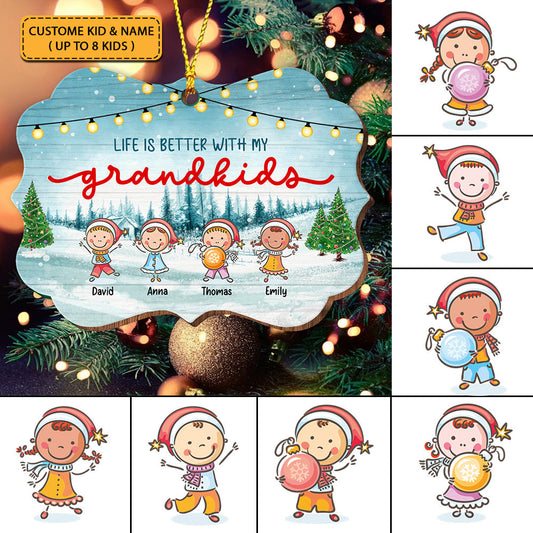 Merry Christmas With Kids - Custom Name - Personalized Custom Shaped Wooden Ornament, Christmas Gift