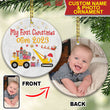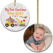 Baby First Xmas, My First Christmas - Custom Photo And Name- Personalized 2 Sides Ceramic Ornament - Gift For Family, Christmas Gift