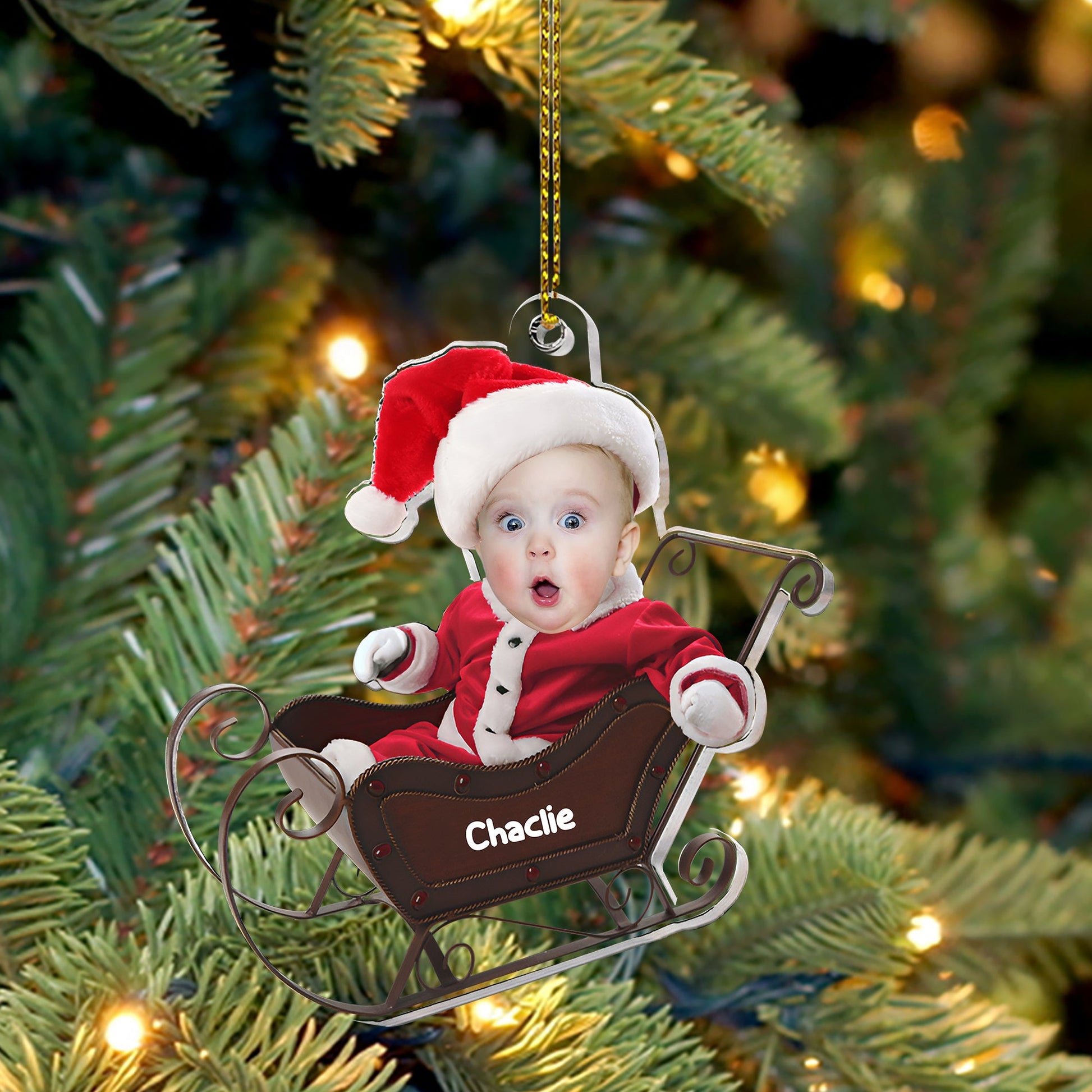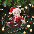 Baby In Christmas Sleigh - Custom Photo And Name, Personalized Acrylic Ornament - Gift For Christmas, Family Gift