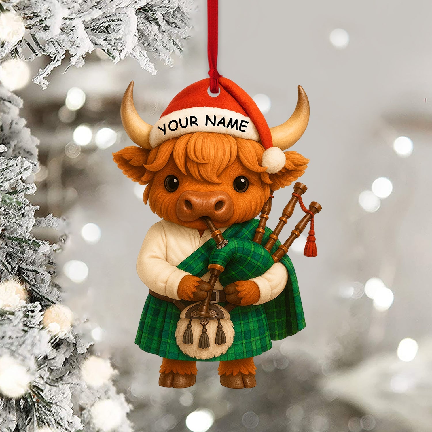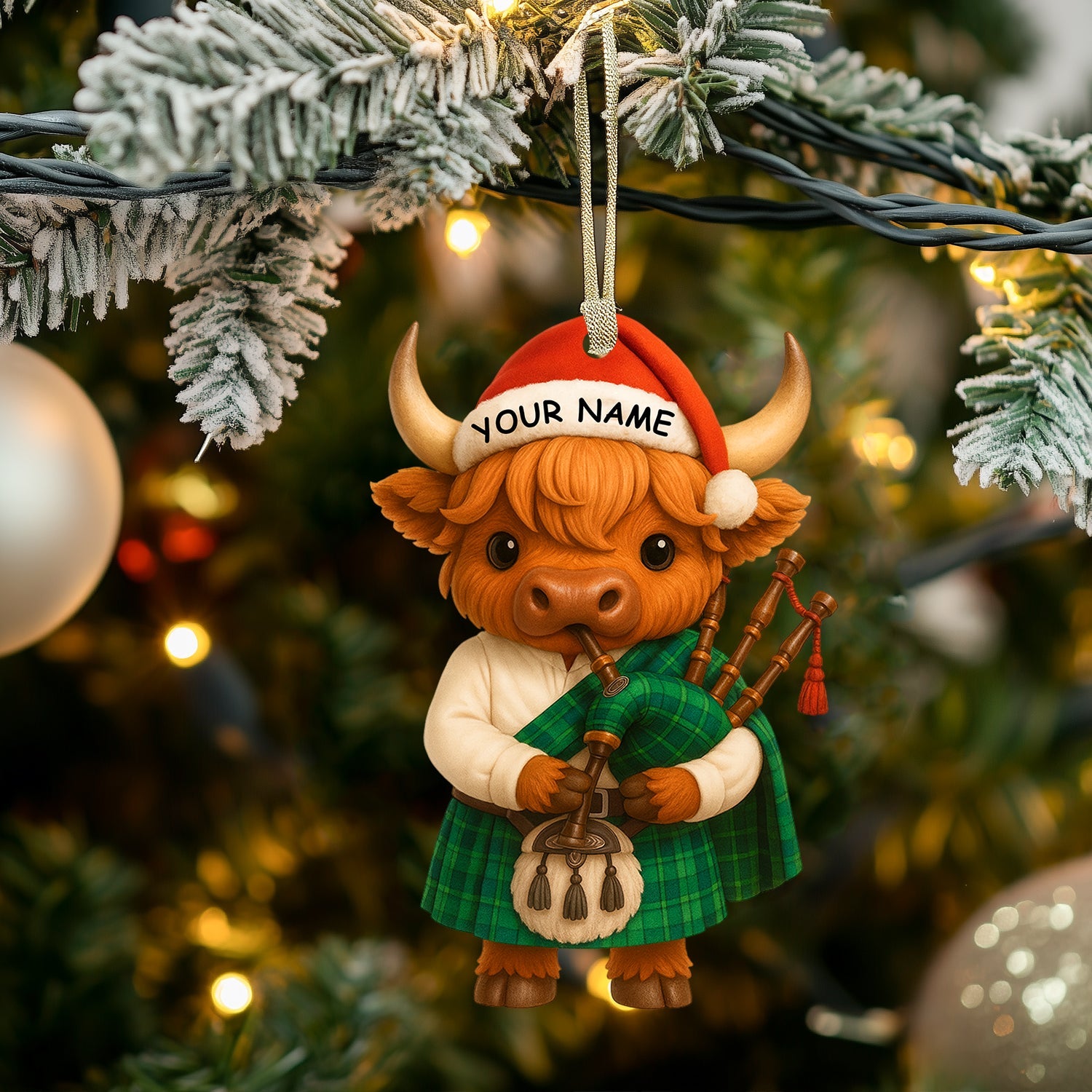 Christmas Scottish Highland Cow, Home Decor, Christmas Ornament, Personalized Ornament