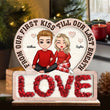 Couple Sitting Christmas, Custom Appearances And Names, Personalised Wooden Place Names - Christmas Gift For Lover - Standing Table Decoration