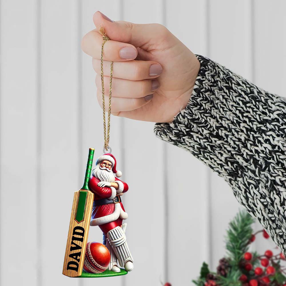 Cricket Ball Ready Santa Christmas Ornament, Personalized Ornament