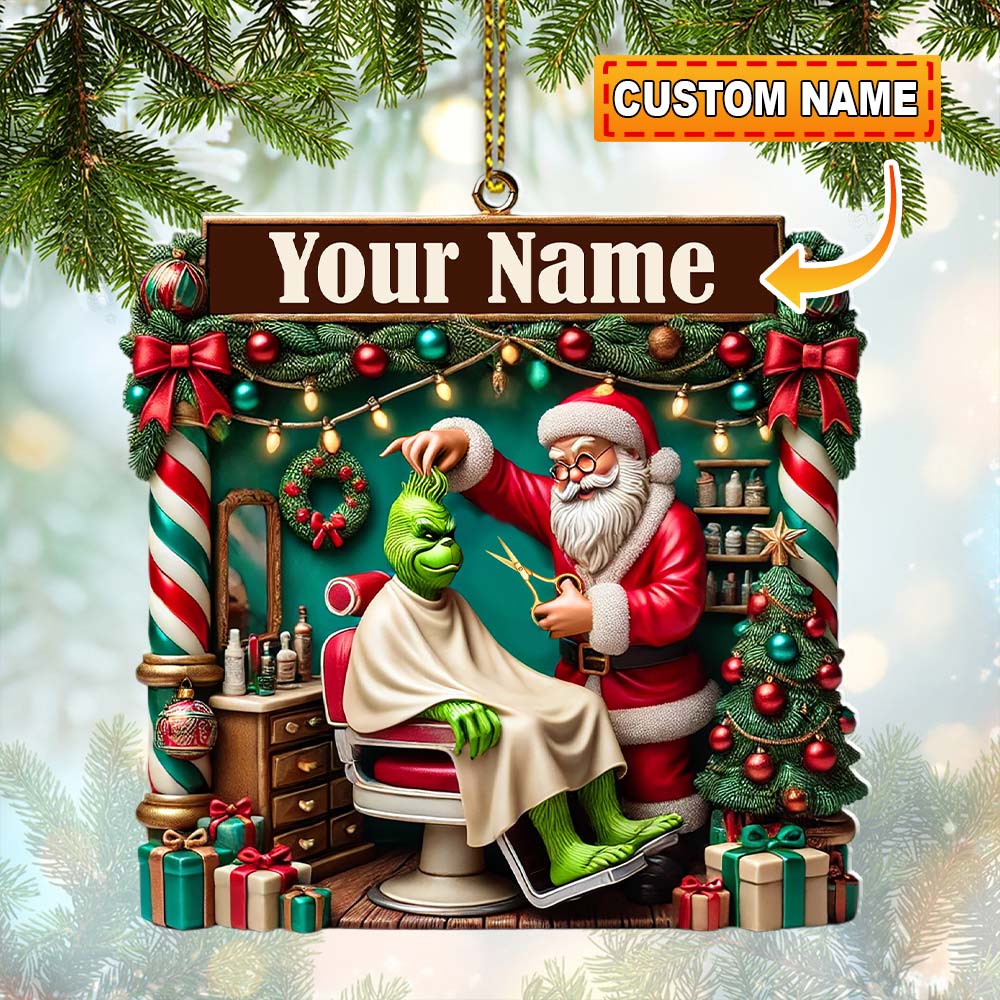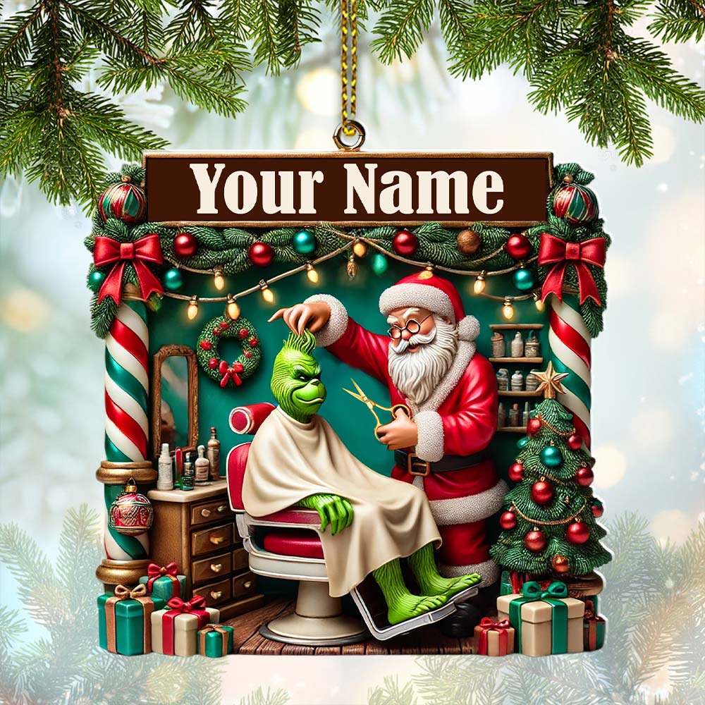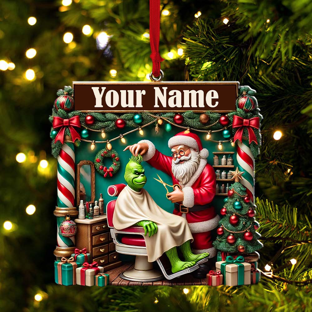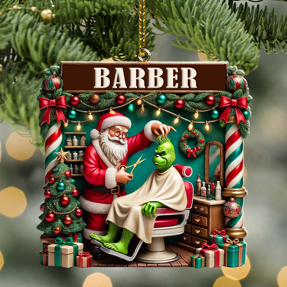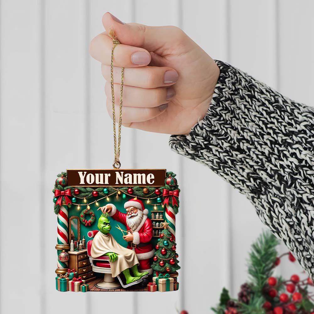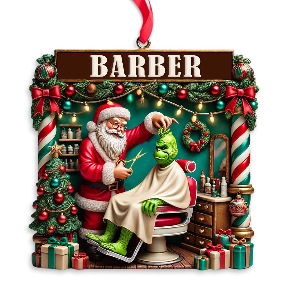 Custom Barber Santa Ornament, Personalized Ornament