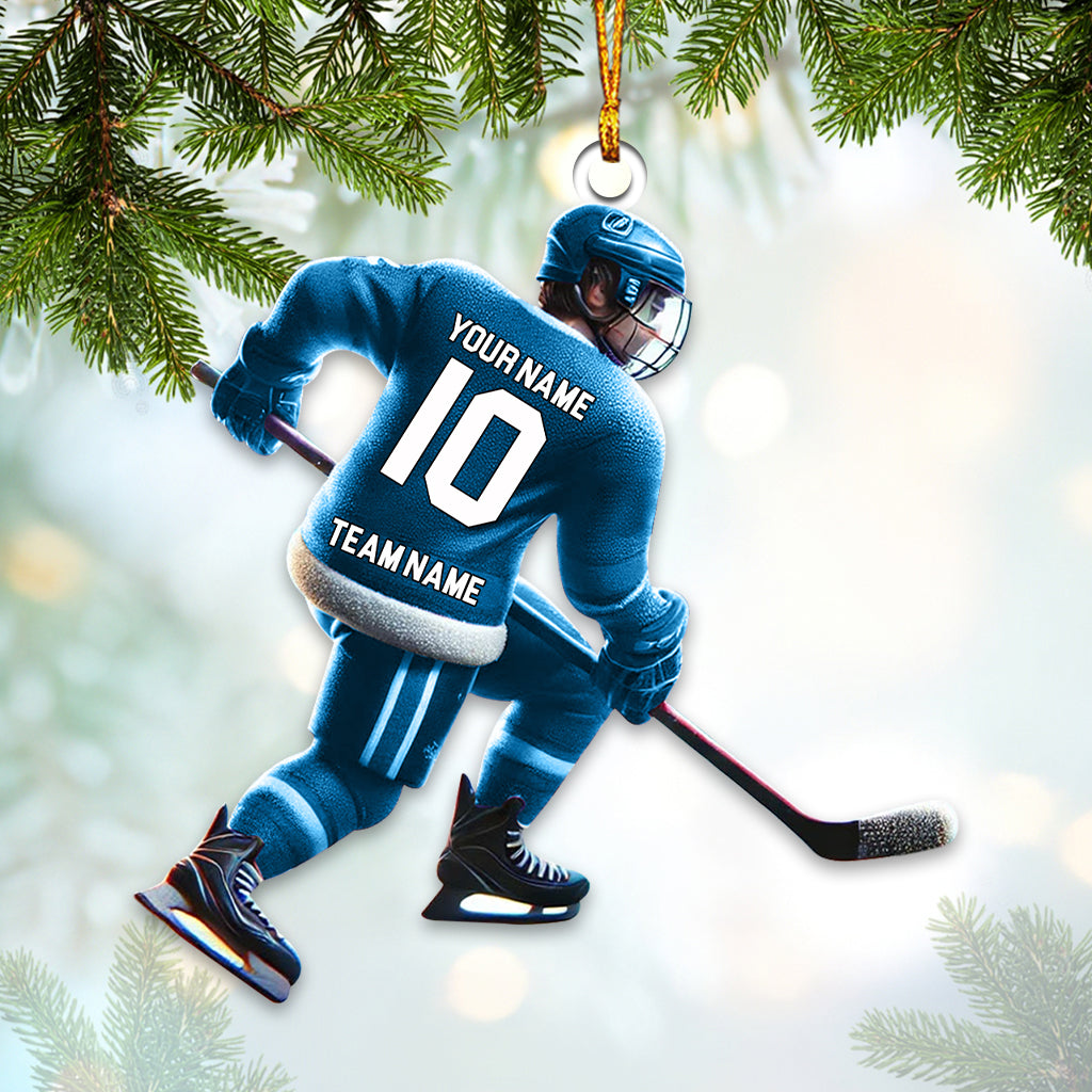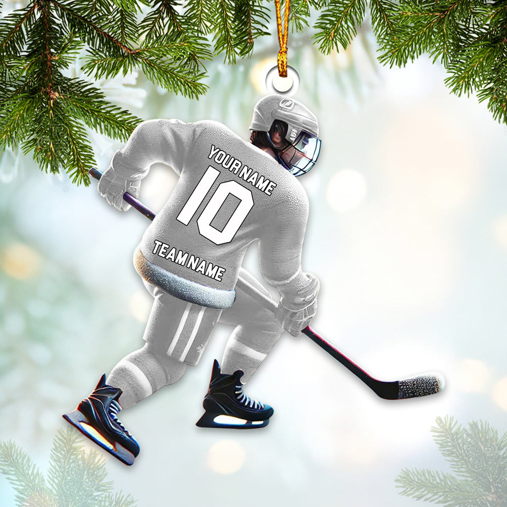 Custom Name and Number Ice Hockey Ornament, Christmas Gift Decoration