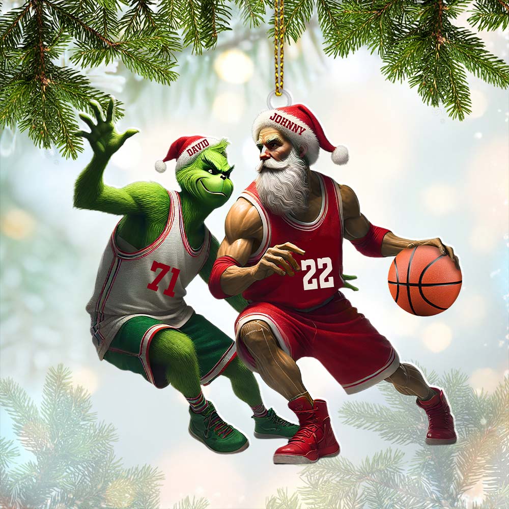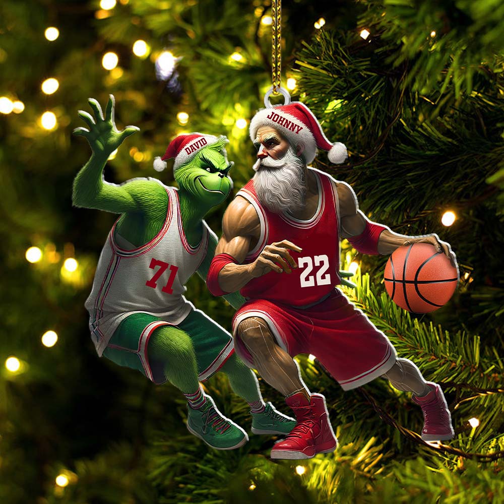 Custom Name and Number Santa and Grinch Basketball Ornament, Christmas Gift for Basketball Lover