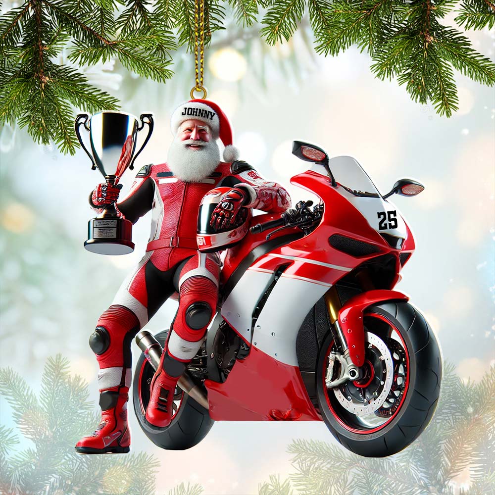 Custom Name and Number Santa Motorbike Ornament, Santa Christmas Gift