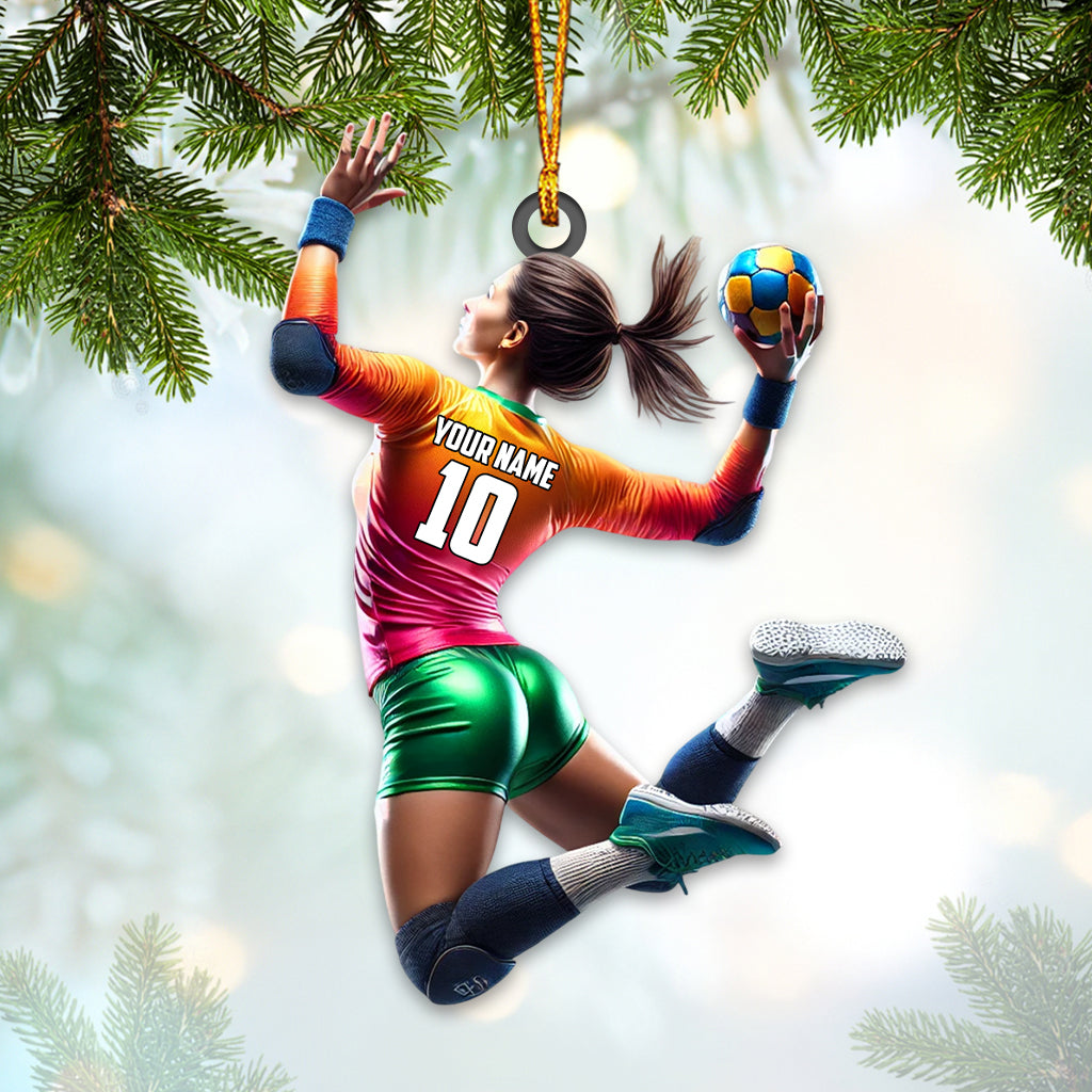 Custom Name and Number Woman Handball Ornament, Christmas Gift Decoration