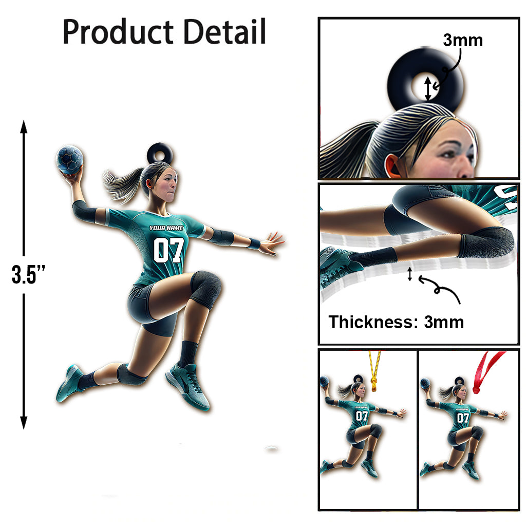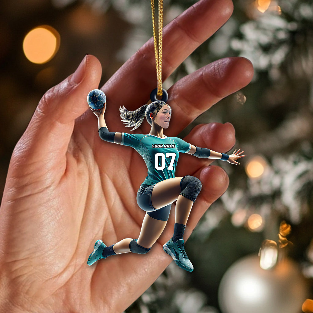 Custom Name and Number Woman Handball Ornament, Handball Lover Christmas Gift