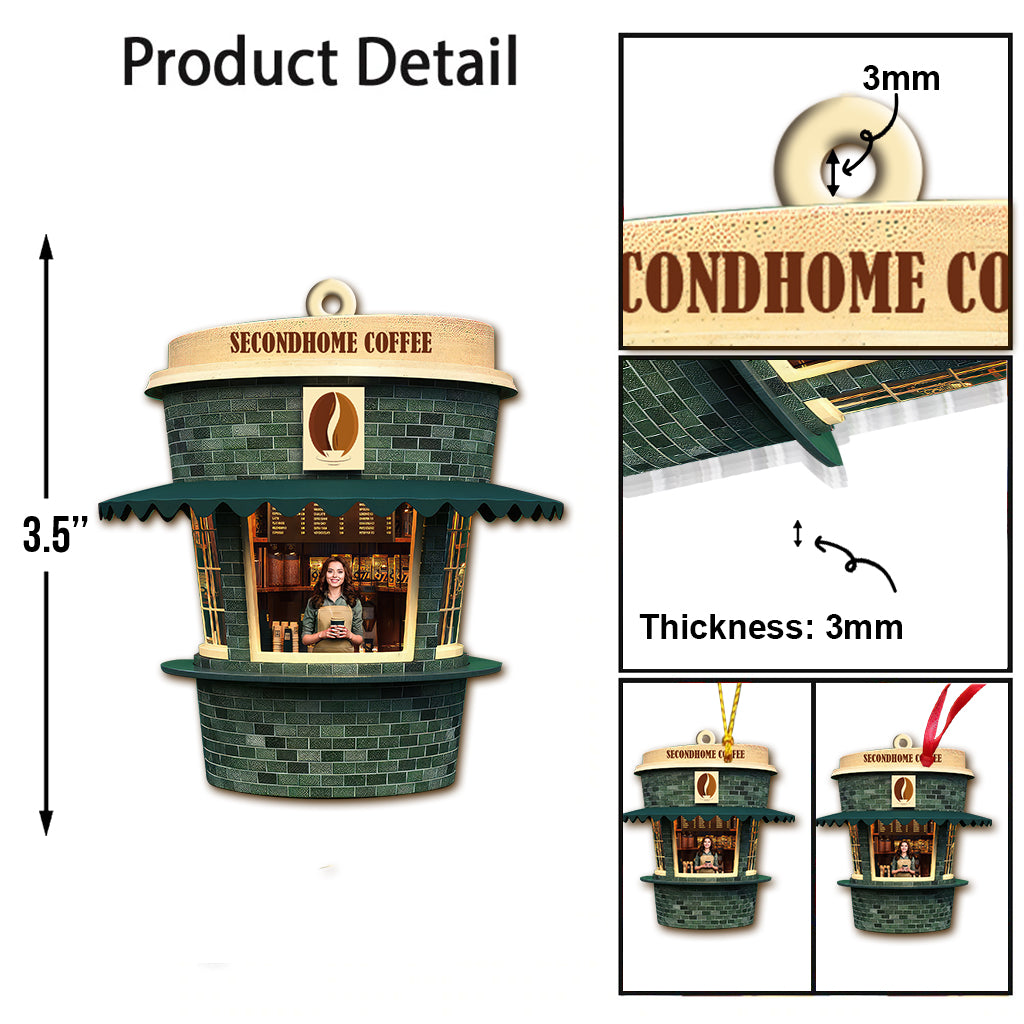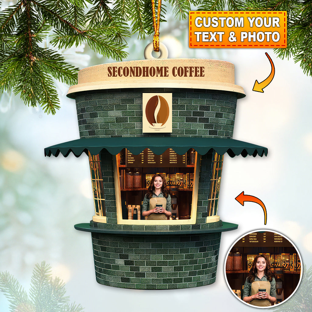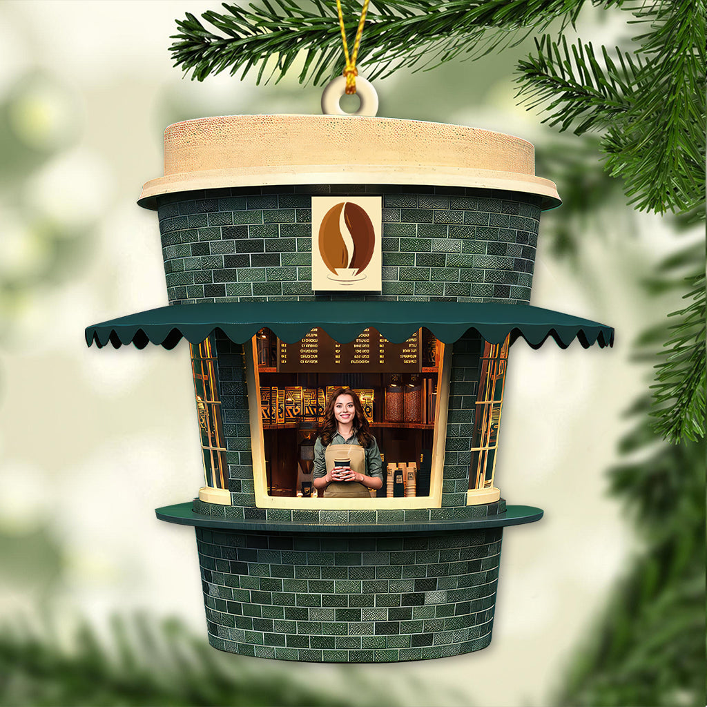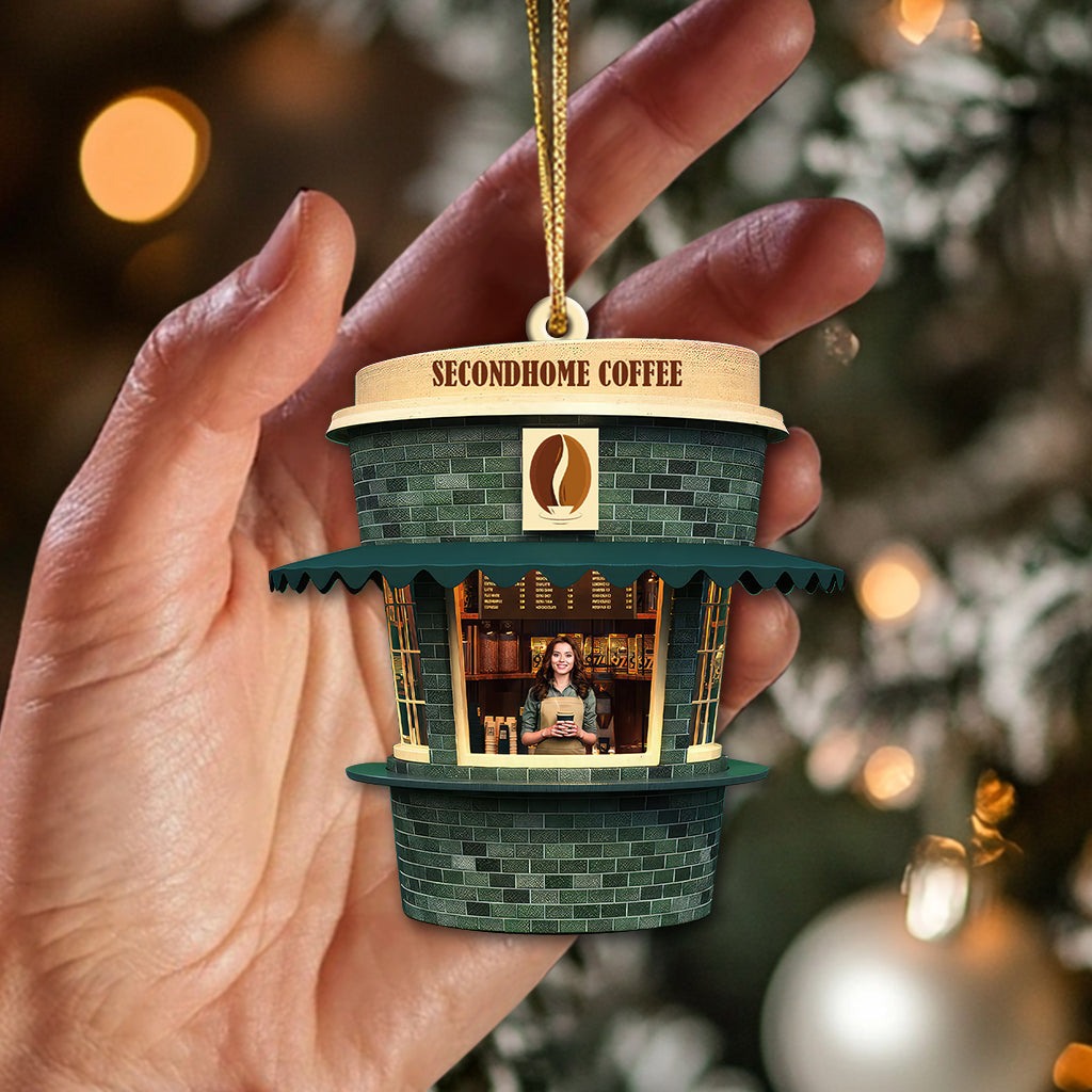 Custom Name and Photo Coffee Shop Ornament, Coffee Love Christmas Gift