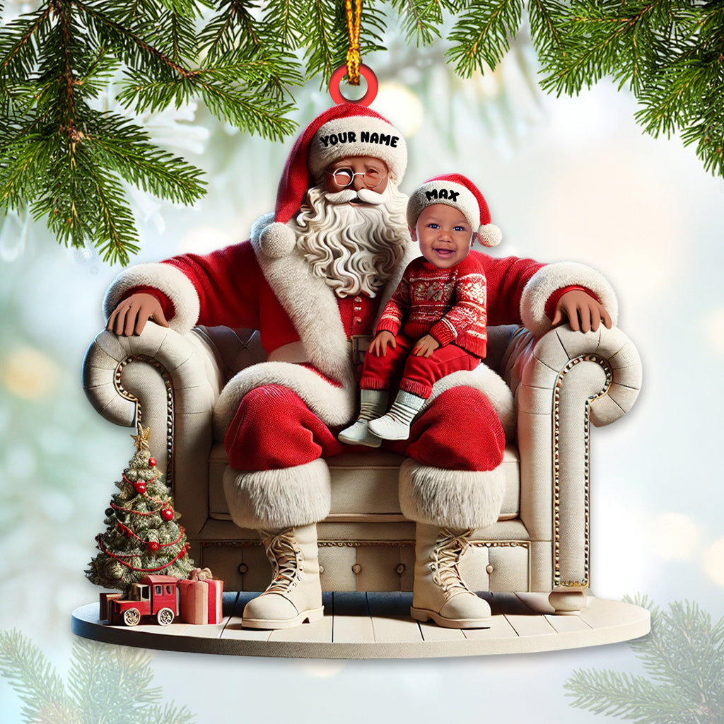 Custom Name and Photo Santa Ornament, Santa and Baby Christmas Ornament