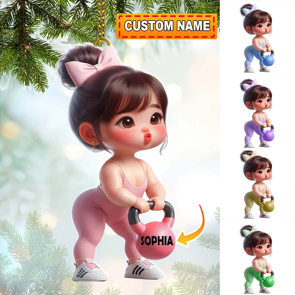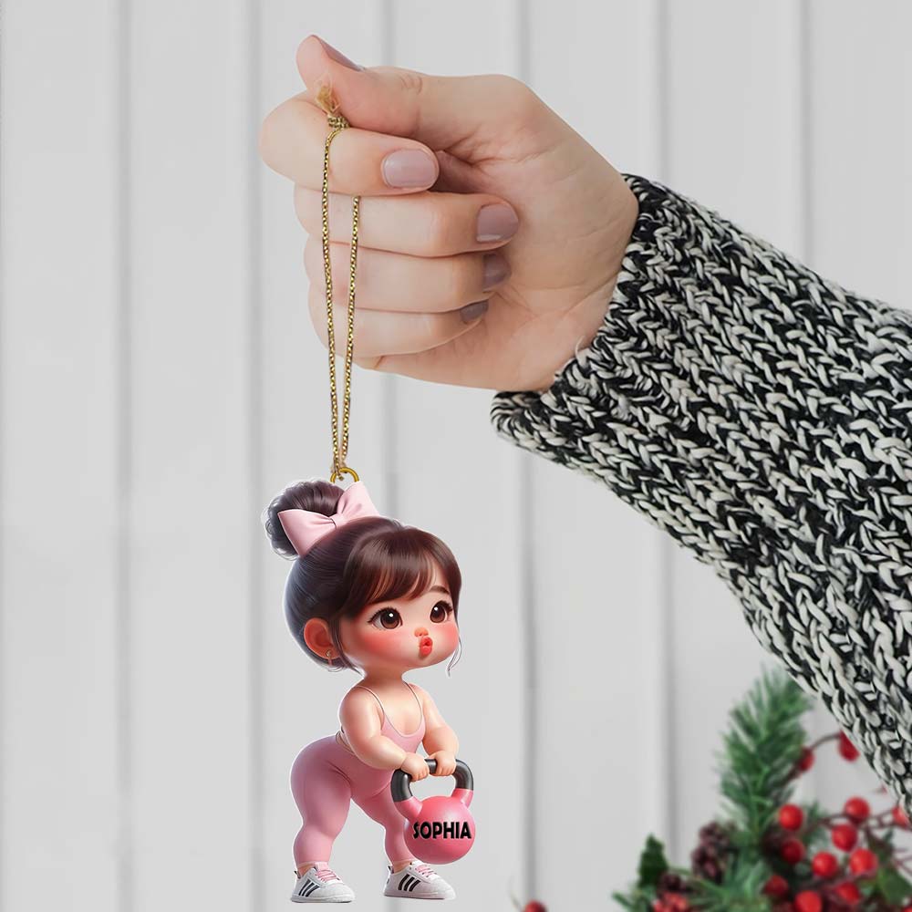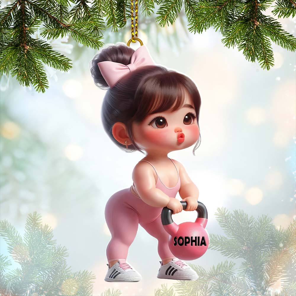 Custom Name Baby Girl Work Out Ornament, Work Out Christmas Gift