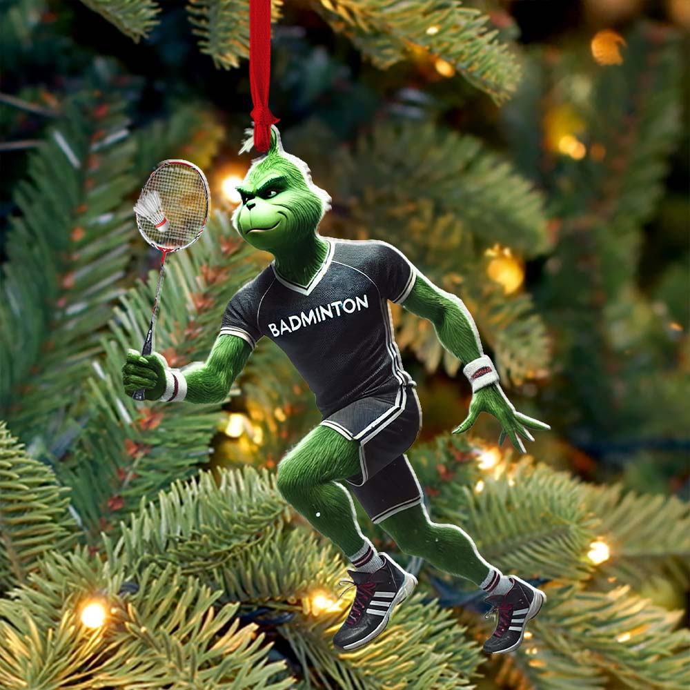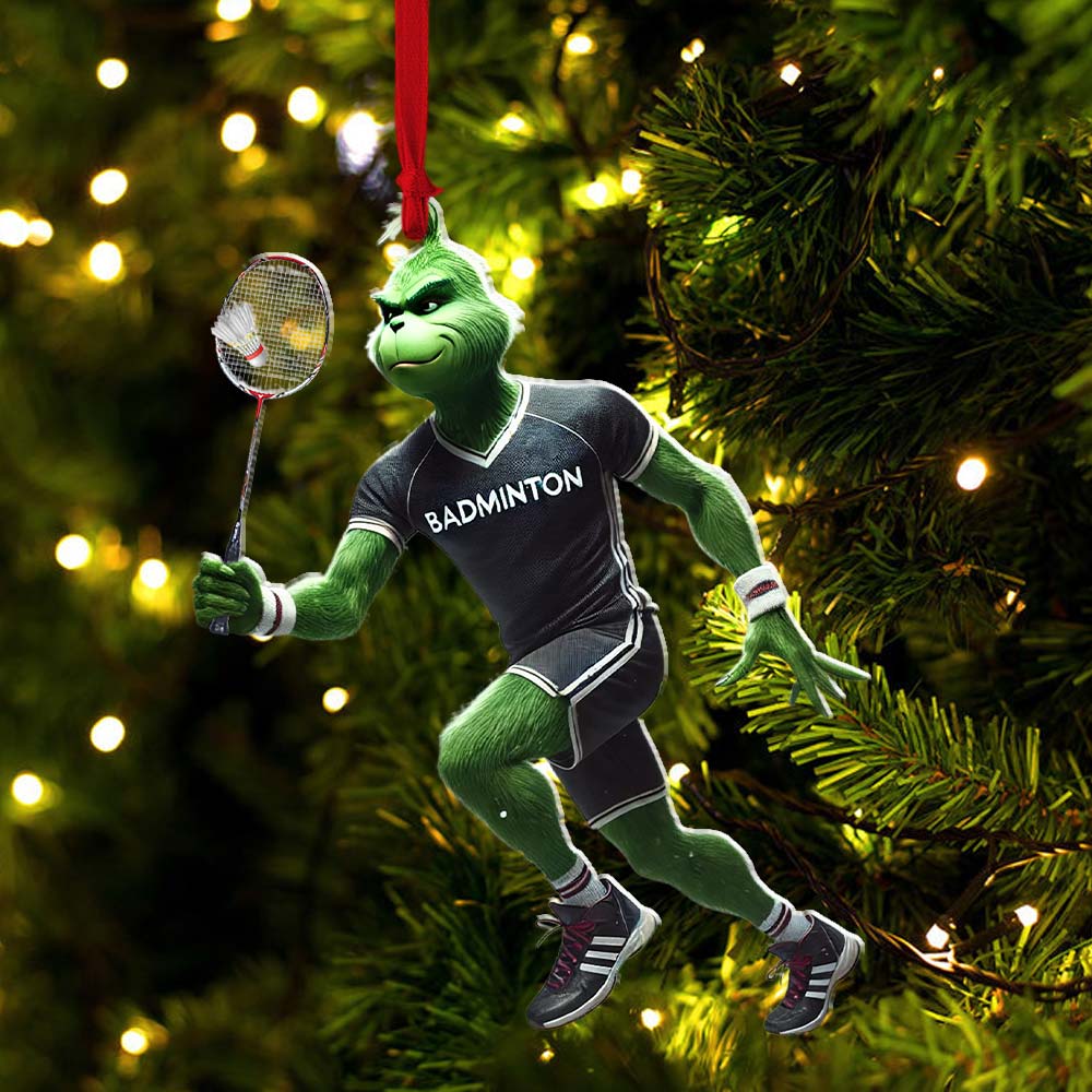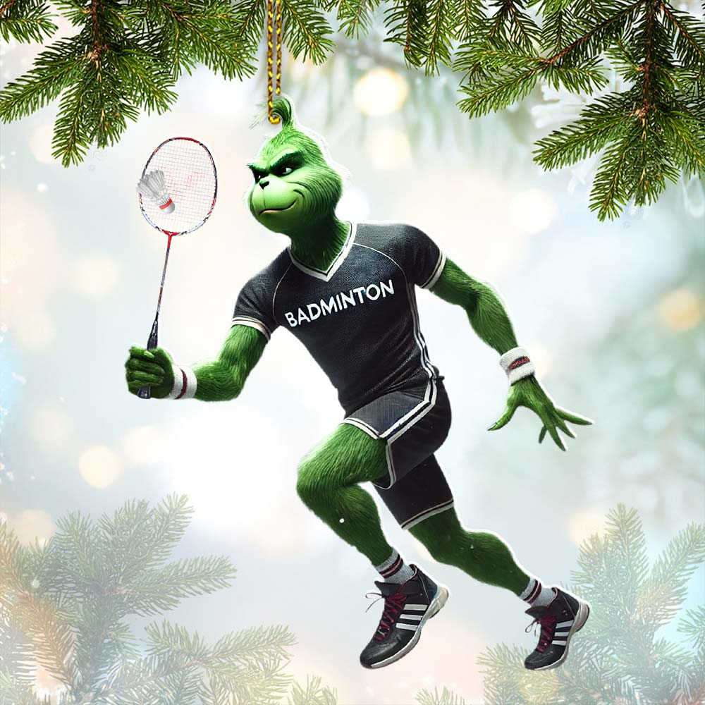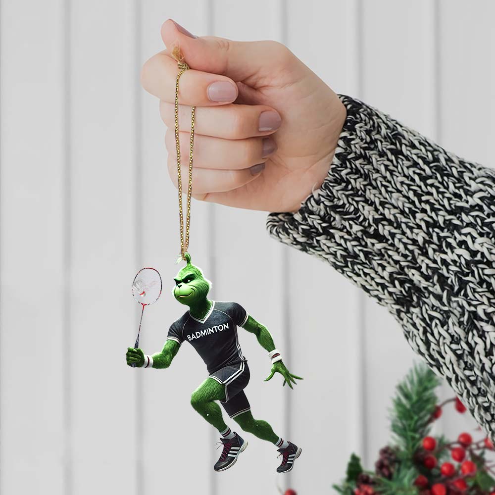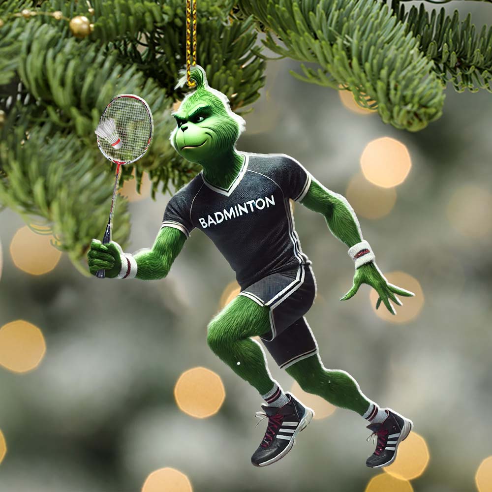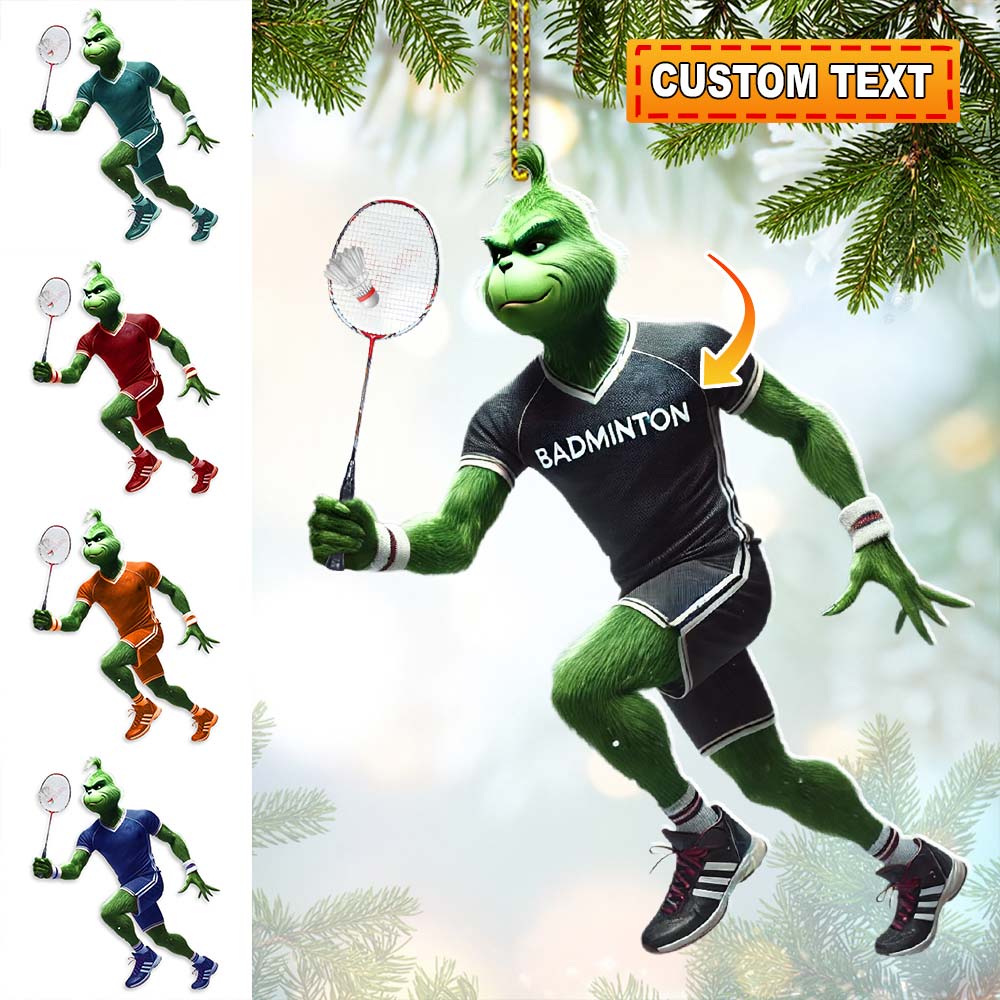 Custom Name Badminton Ornament, Grinch Christmas Gift Decoration