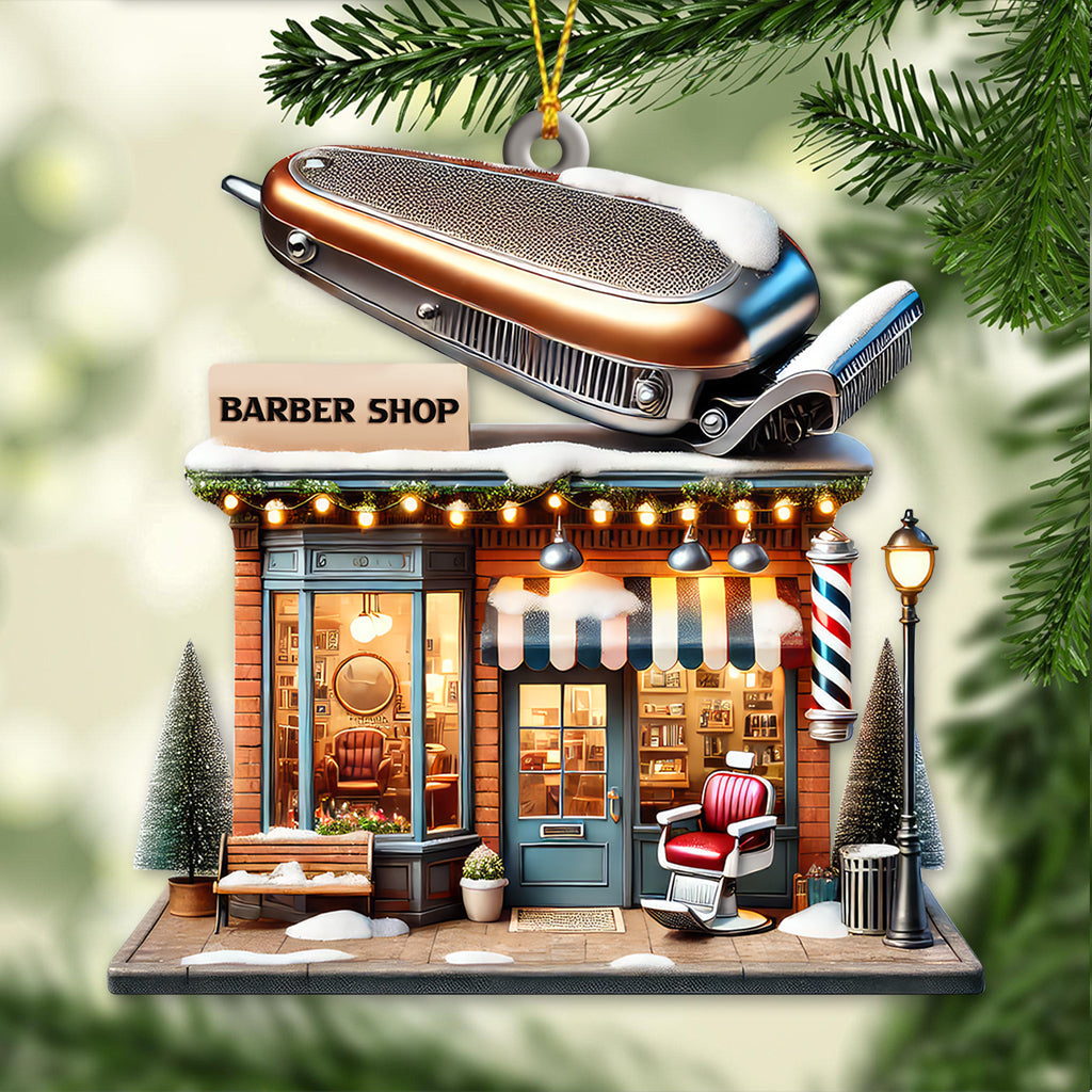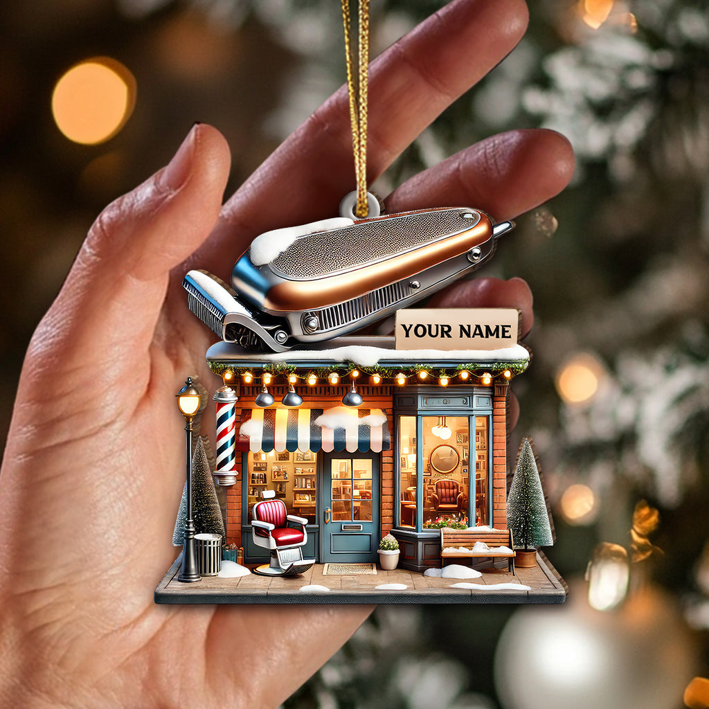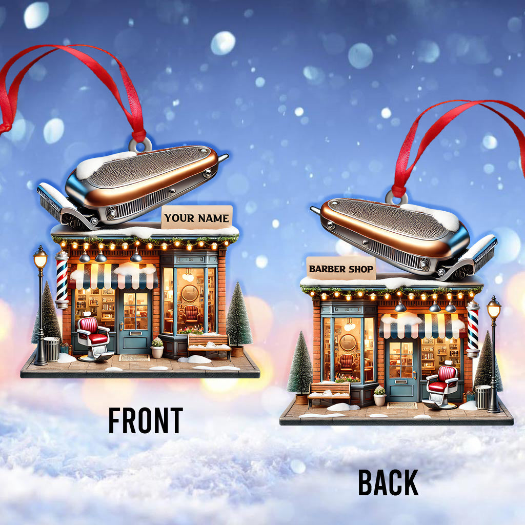 Custom Name Barber Shop Ornament, Barber Shop Christmas Decoration