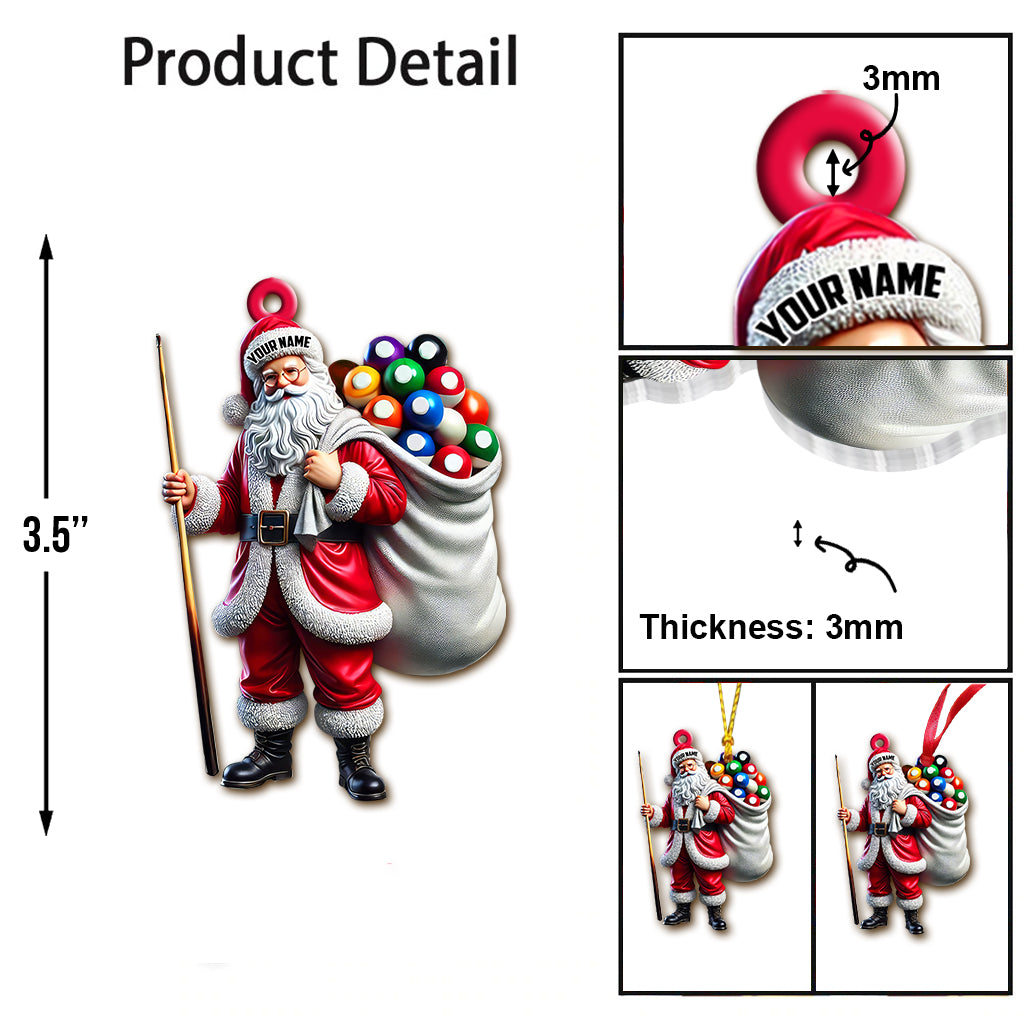 Custom Name Billiard Santa Ornament, Billiard Lover Christmas Gift