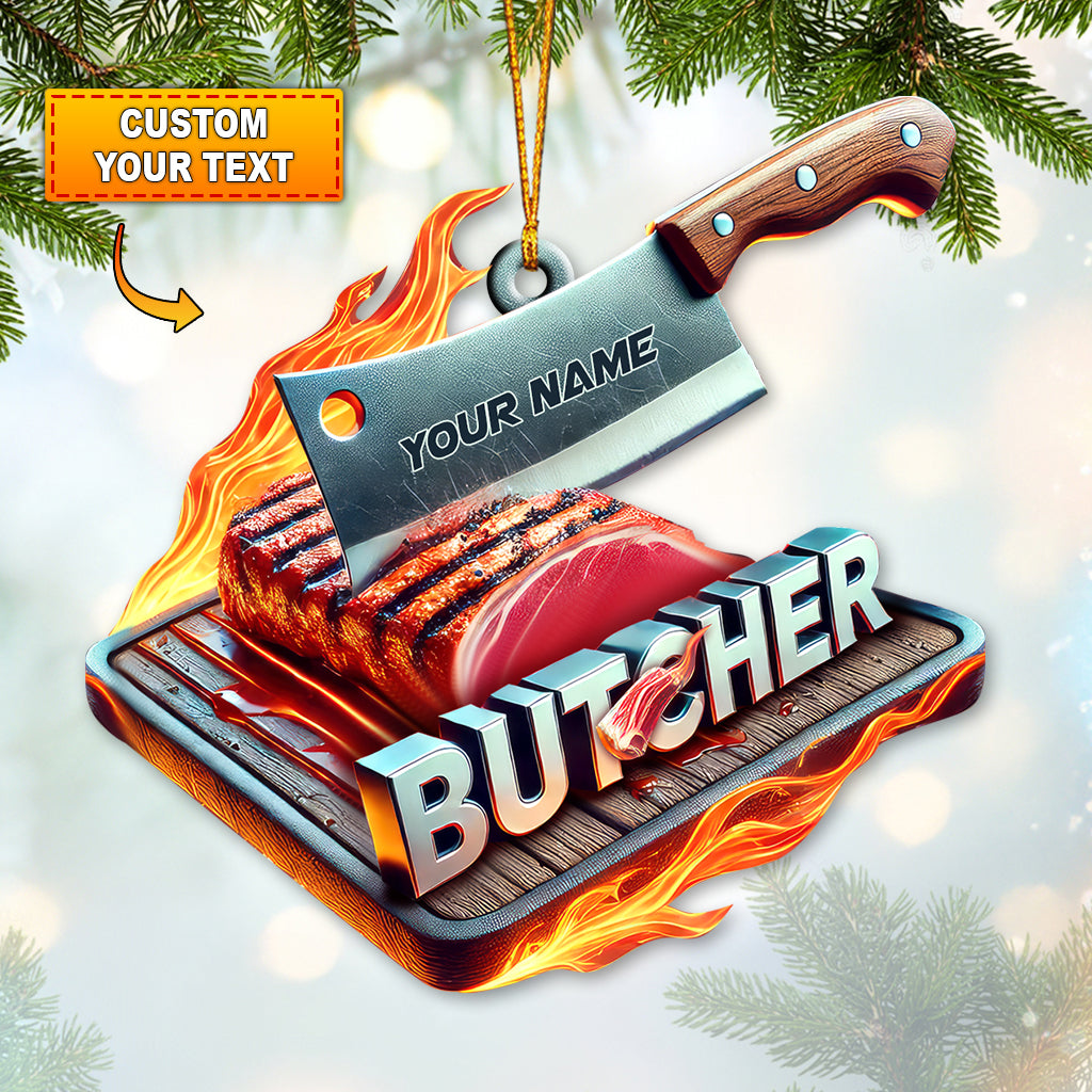 Custom Name Butcher Ornament, Christmas Gift