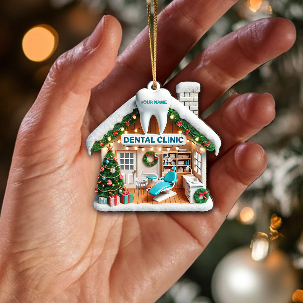Custom Name Dental Clinic Ornament, Christmas Gift for Dentist