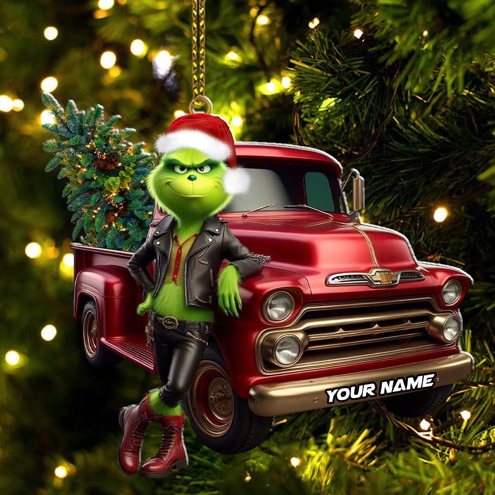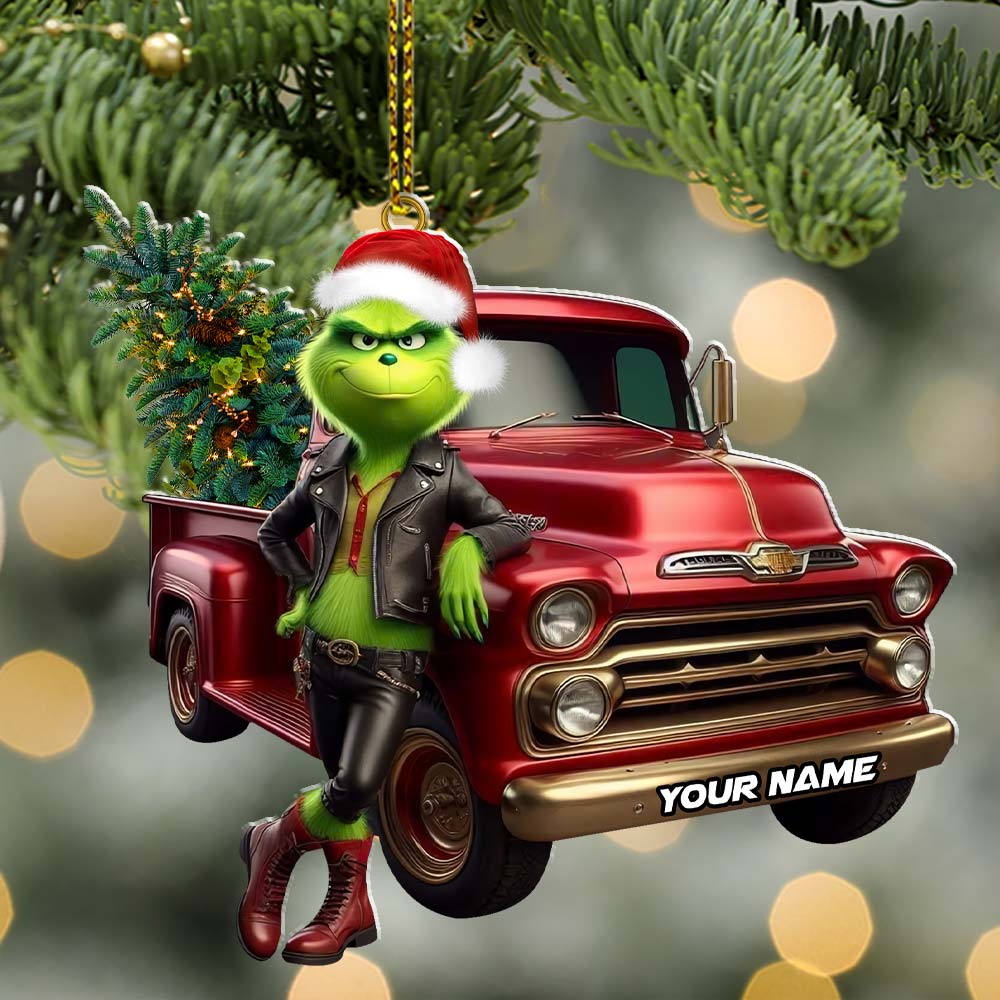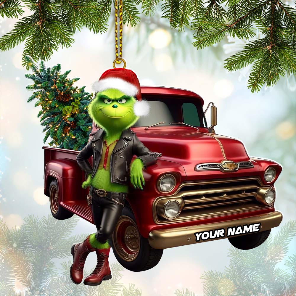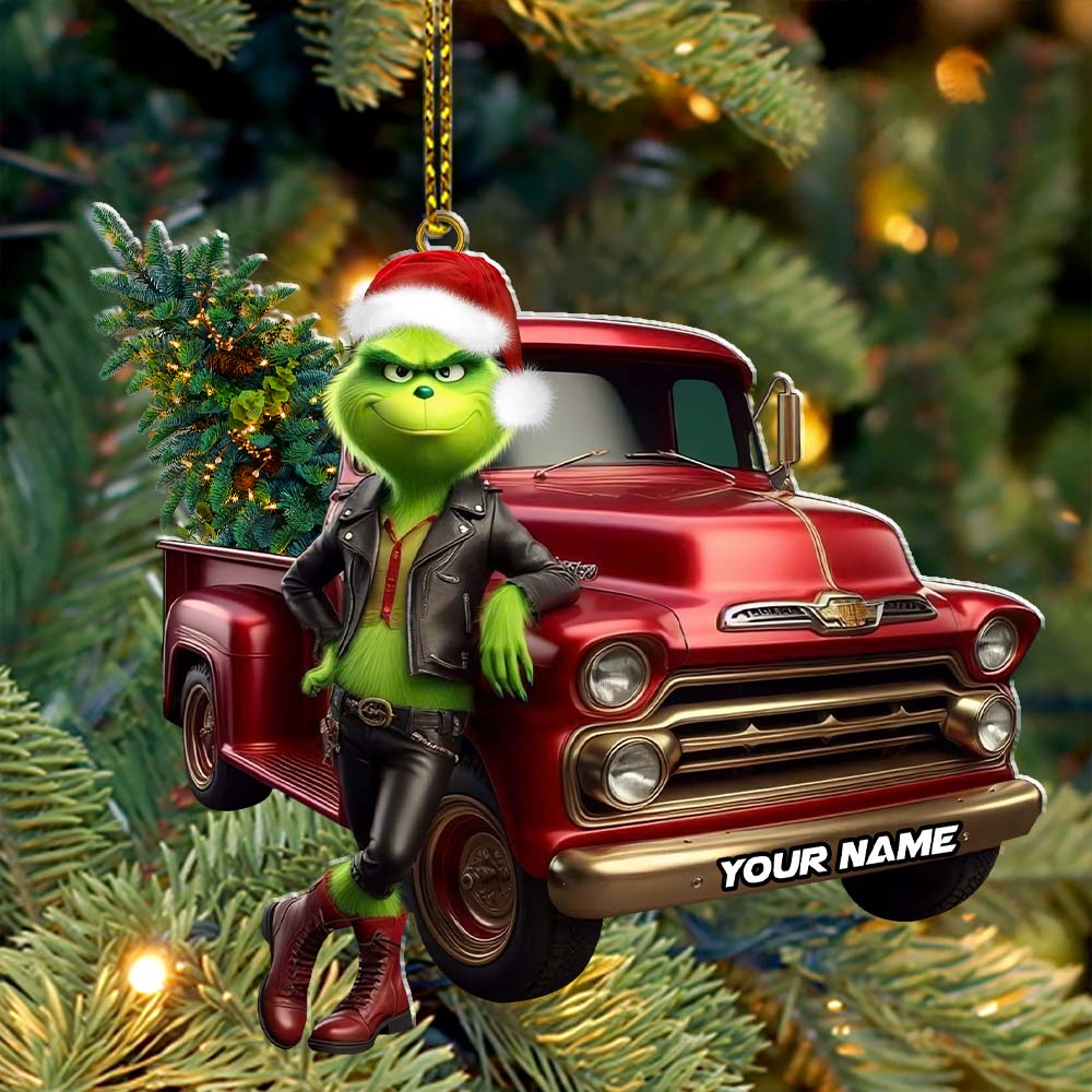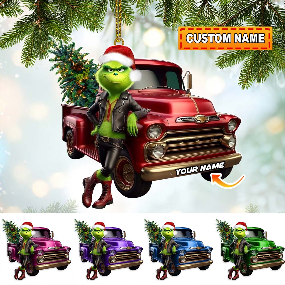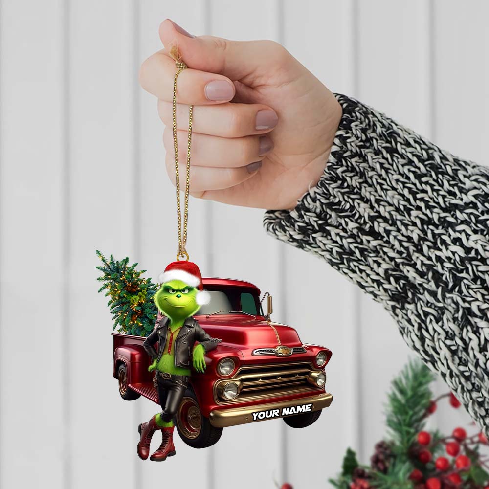 Custom Name Grinch Truck Ornament, Christmas Gift Decor