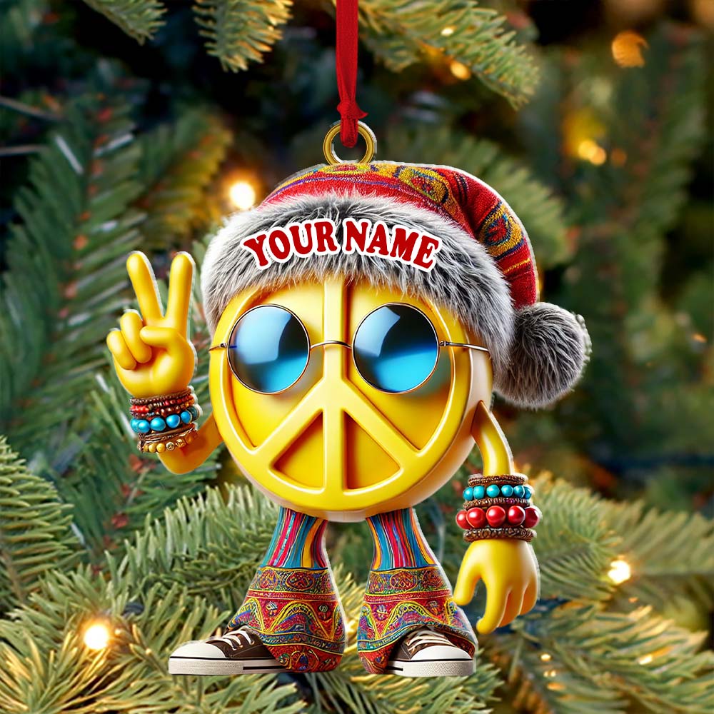 Custom Name Hippie Love Ornament, Christmas Gift Decoration