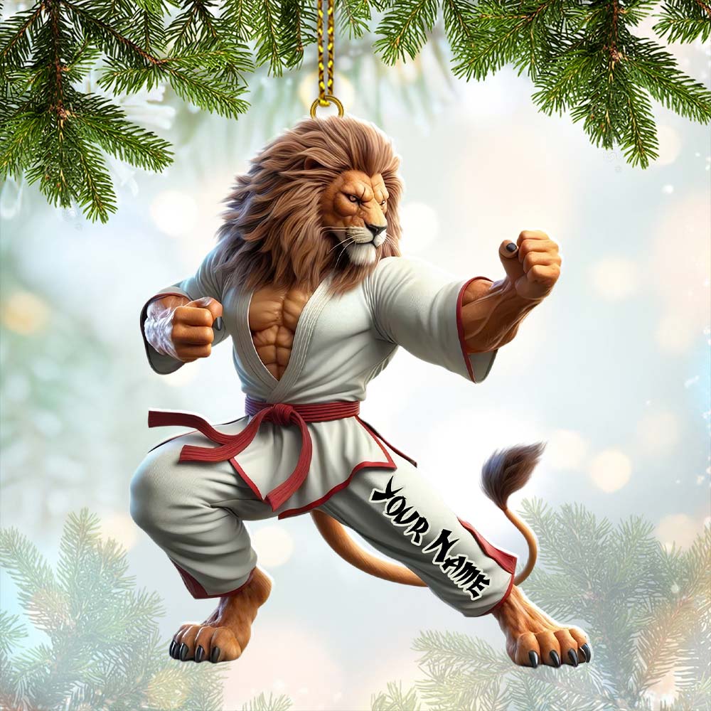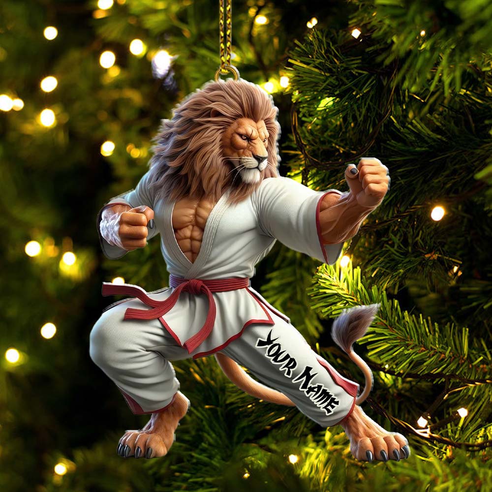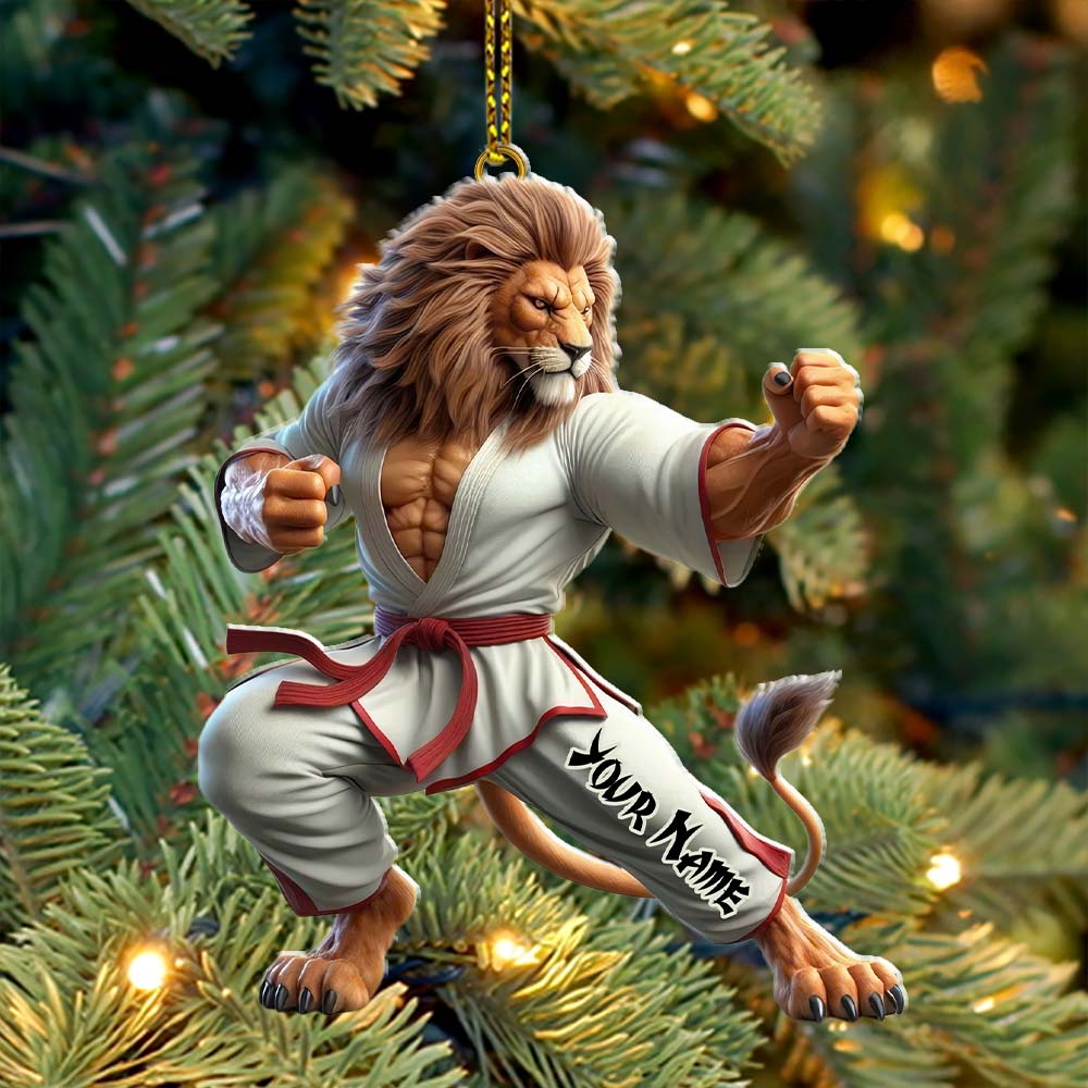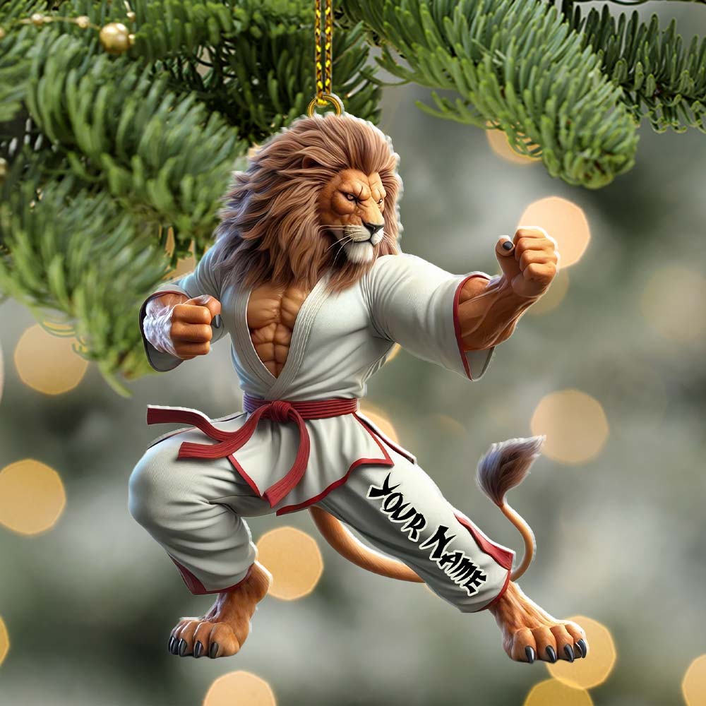 Custom Name Lion Karate Ornament, Karate Christmas Gift