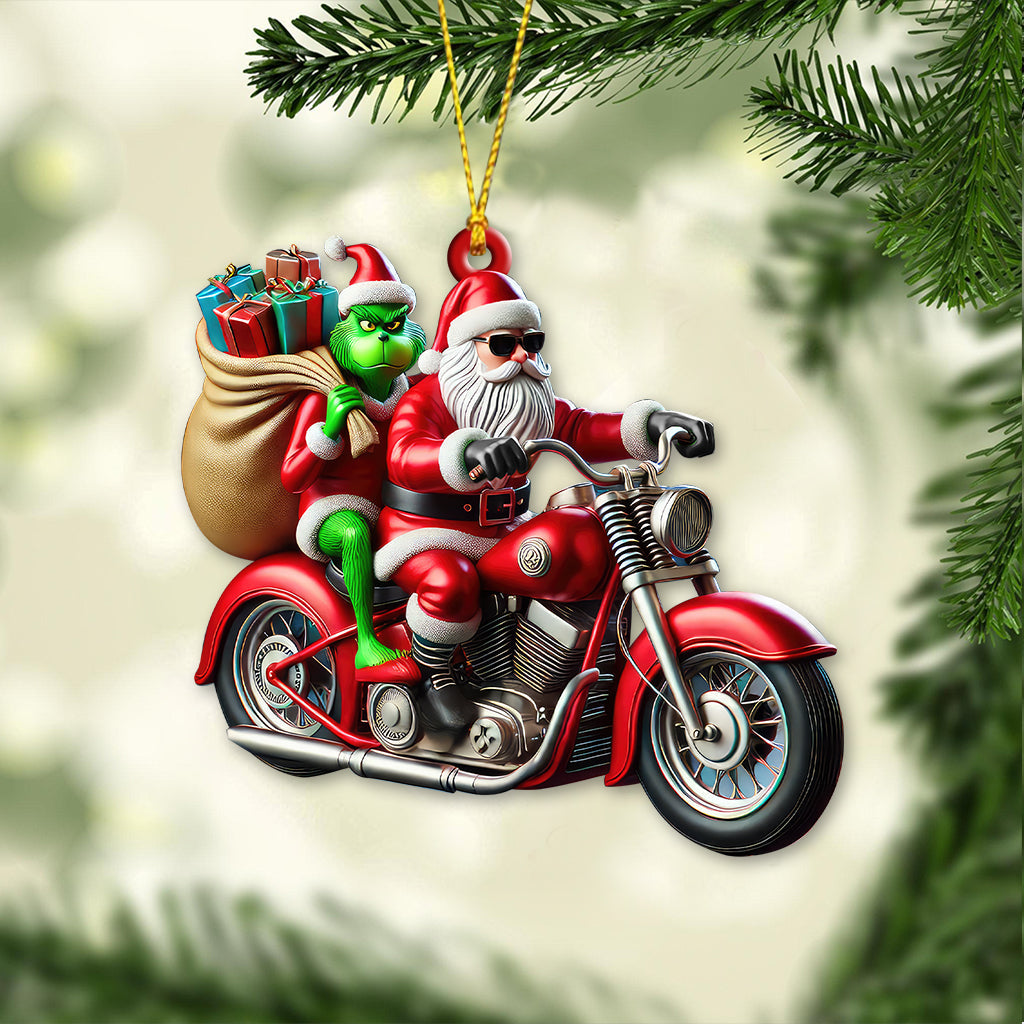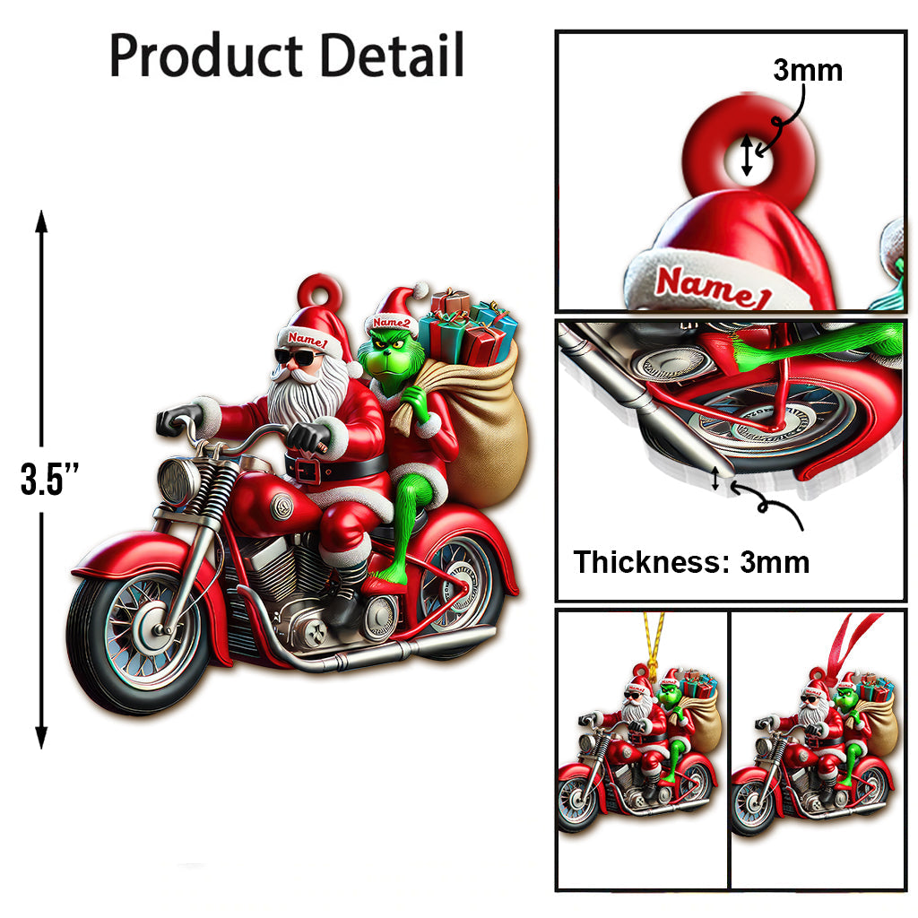 Custom Name Motorcycle Christmas Santa Ornament, Christmas Gift for Motorcycle Lover