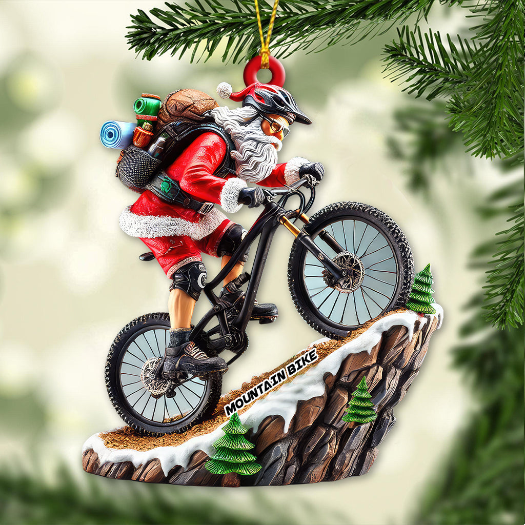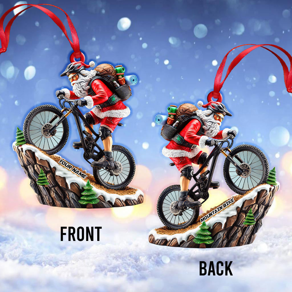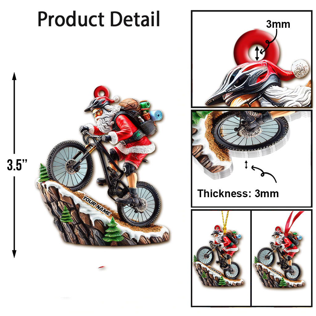 Custom Name Mountain Bike Ornament, Santa Mountain Bike Christmas Gift