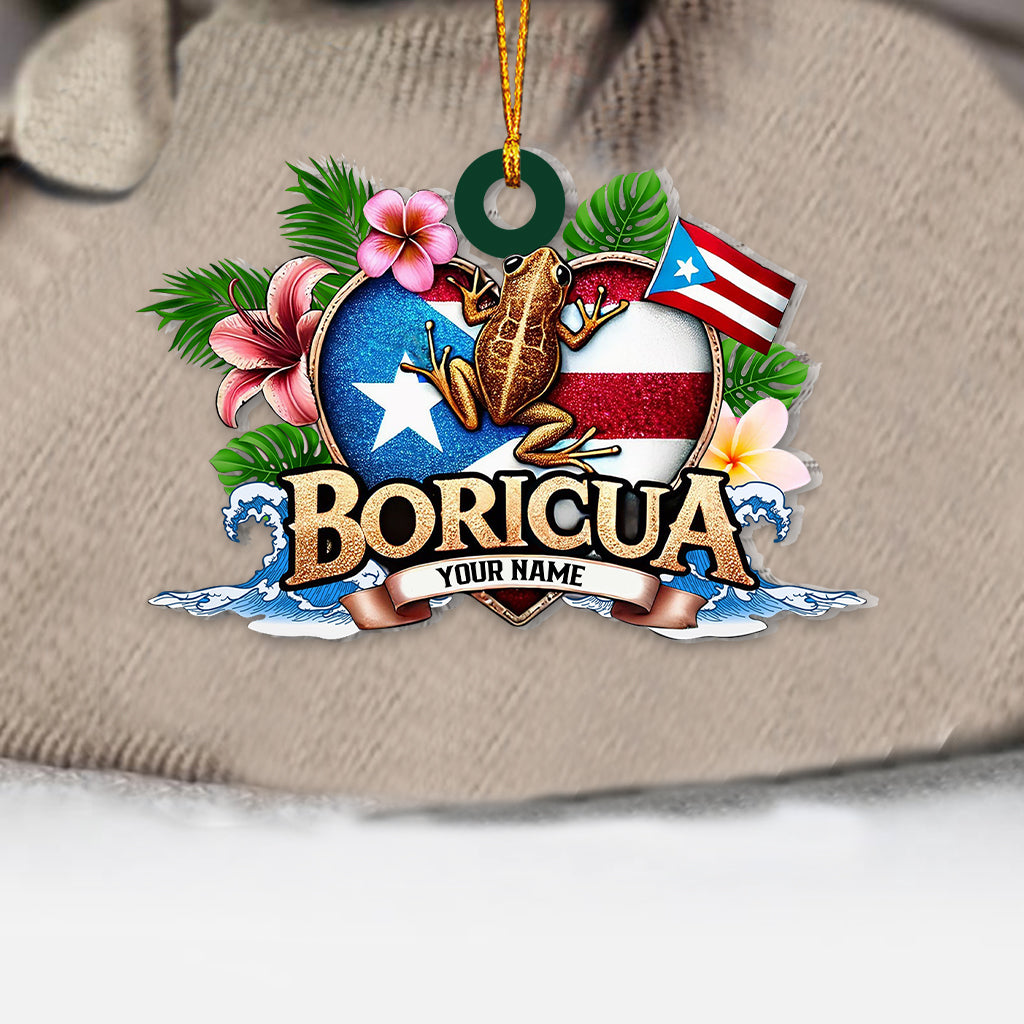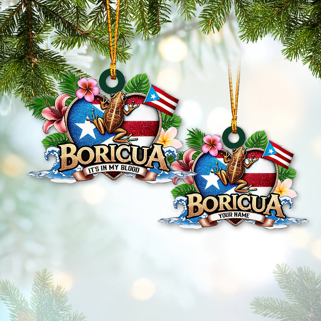 Custom Name Ornament, Boricua It's in My Blood Puerto Rican Heritage