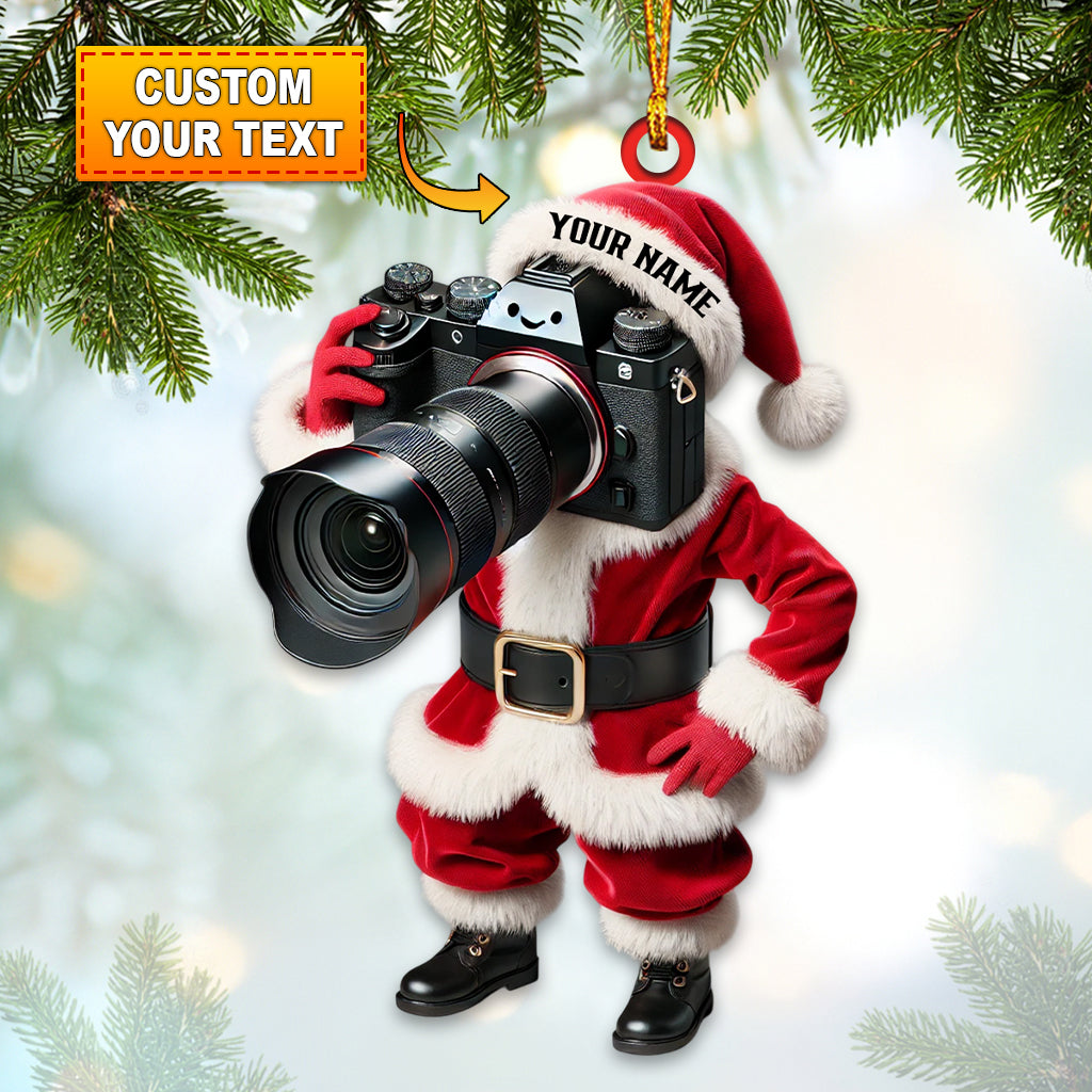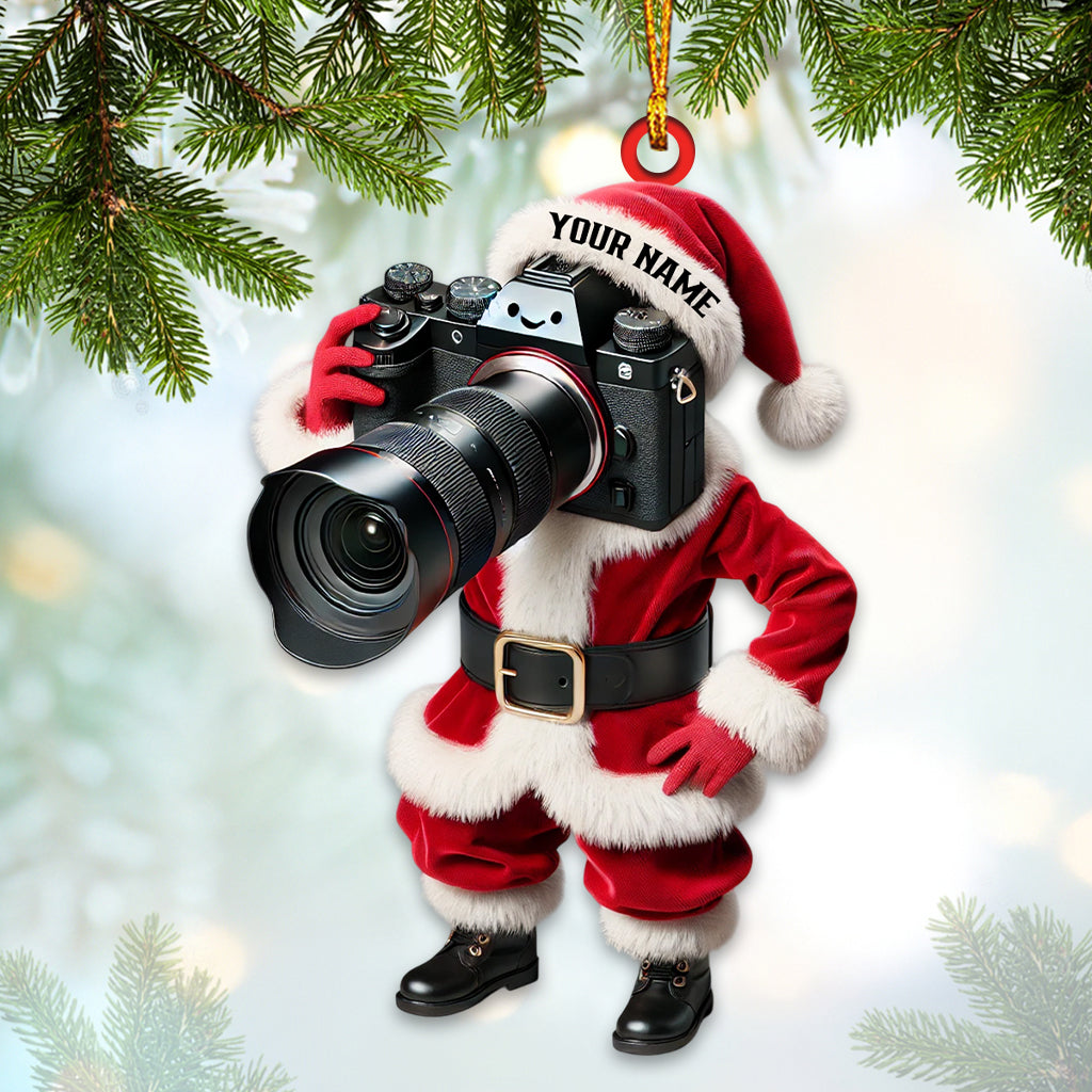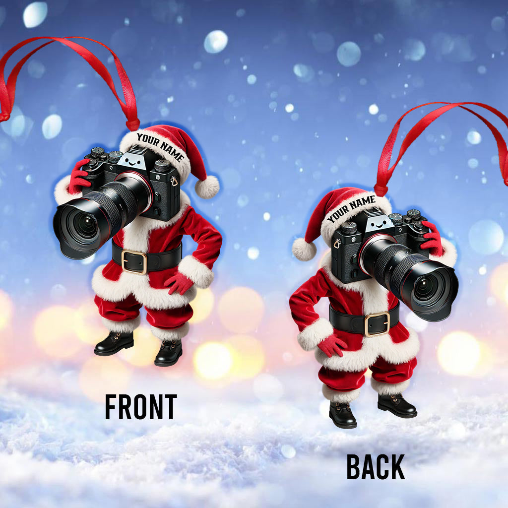 Custom Name Photographer Santa Ornament, Photographer Christmas Gift Decoration