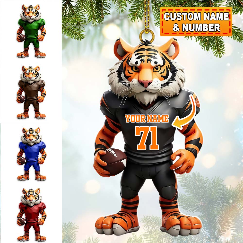 Custom Name Rugby Football Tiger Ornament, Rugby Football Lover Christmas Gift