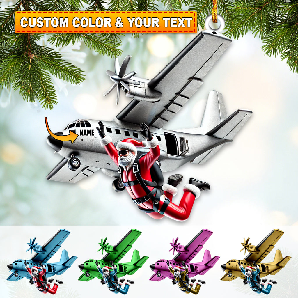 Custom Name Santa Airplane Ornament, Christmas Gift for Airplane Lover