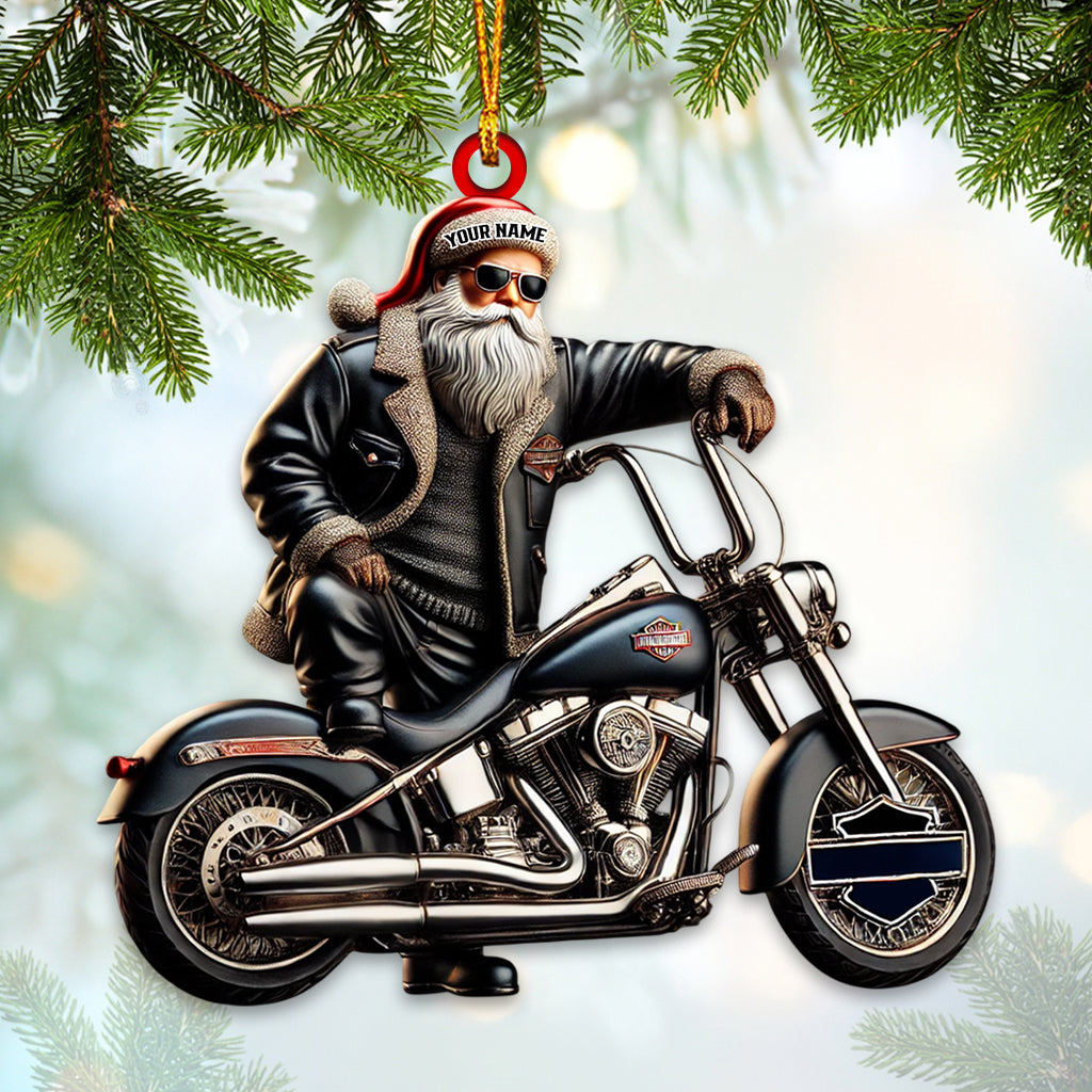 Custom Name Santa Bike Ornament, Christmas Gift Decoration