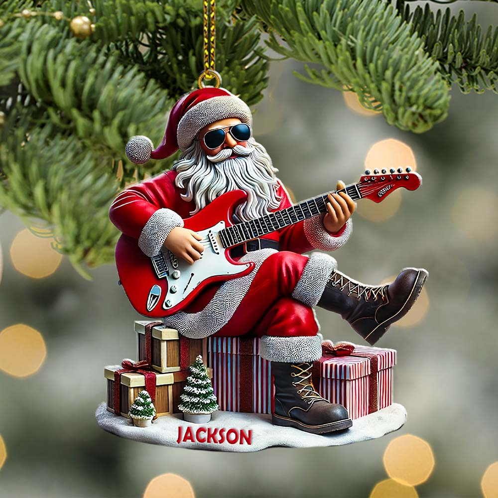 Custom Name Santa Guitar Rock Ornament, Santa Christmas Gift