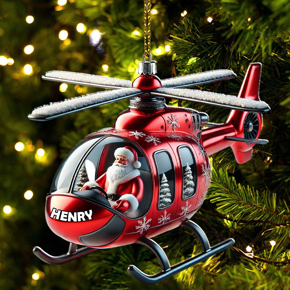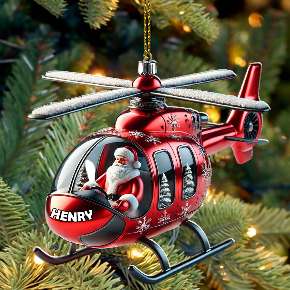 Custom Name Santa Helicopter Ornament, Santa Christmas Gift