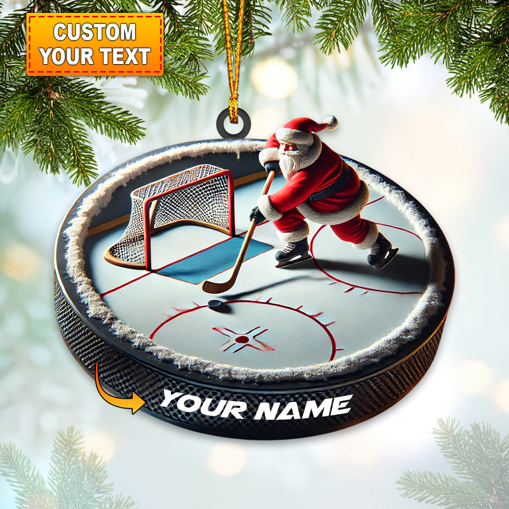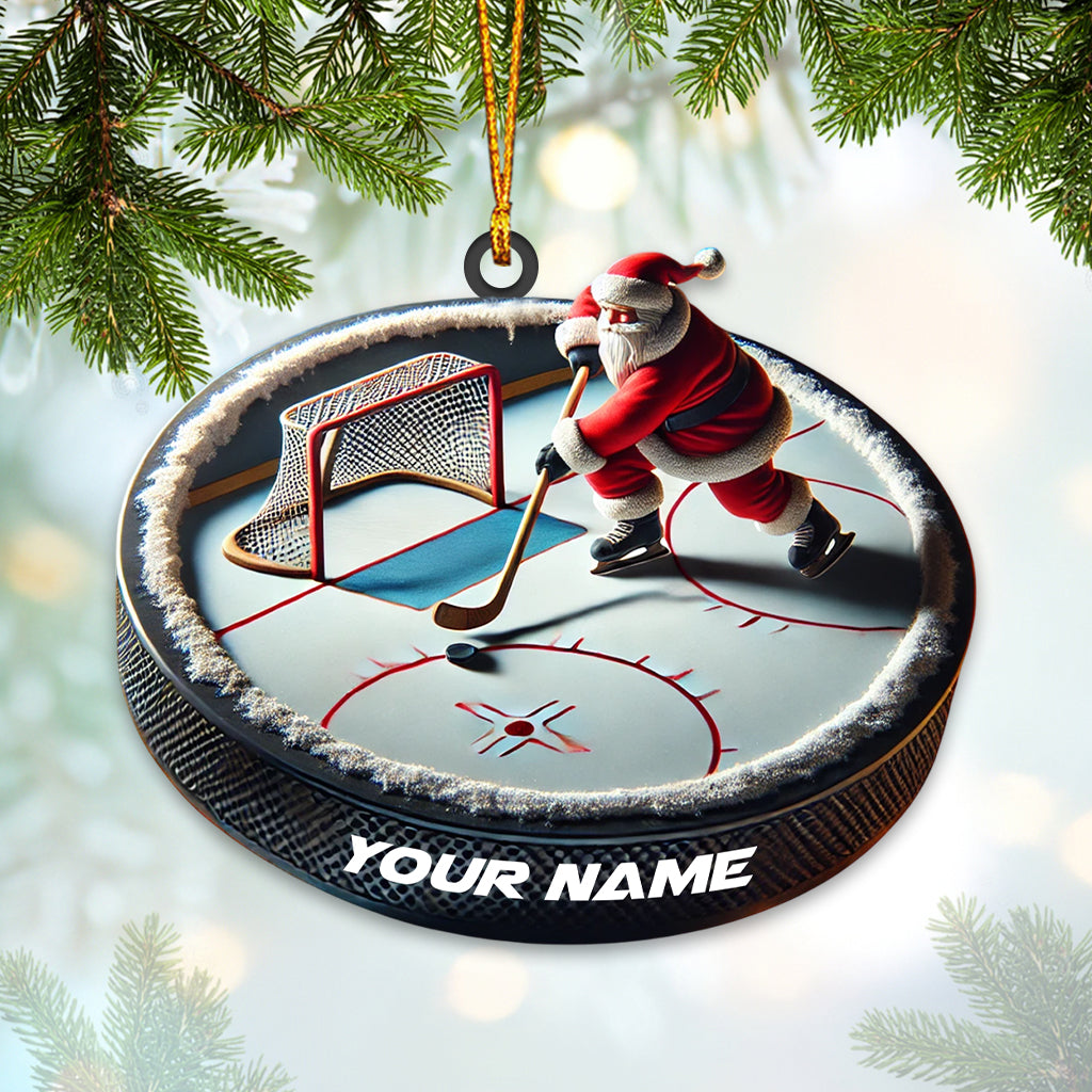 Custom Name Santa Hockey Ornament, Hockey Lover Christmas Gift