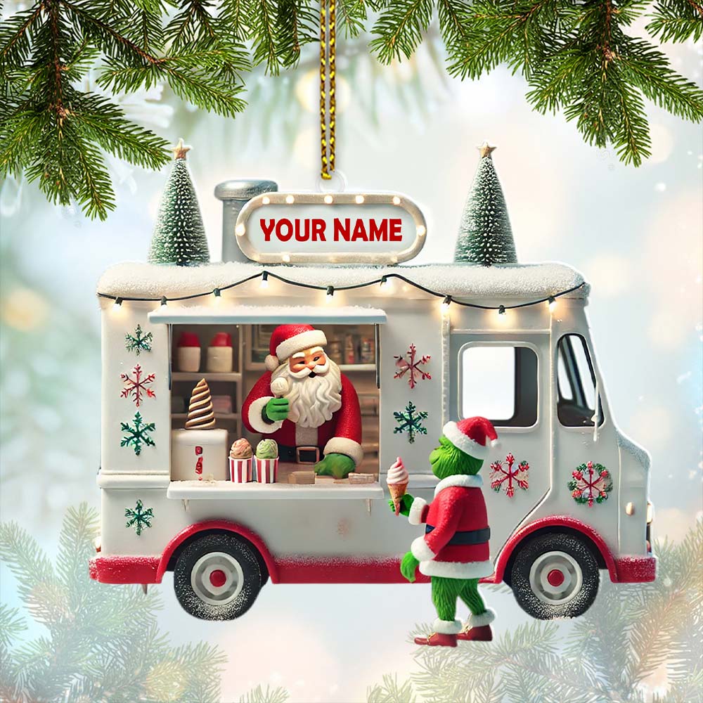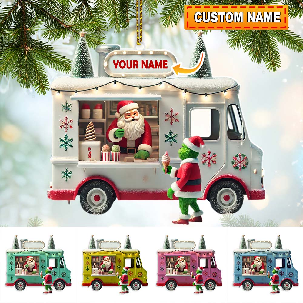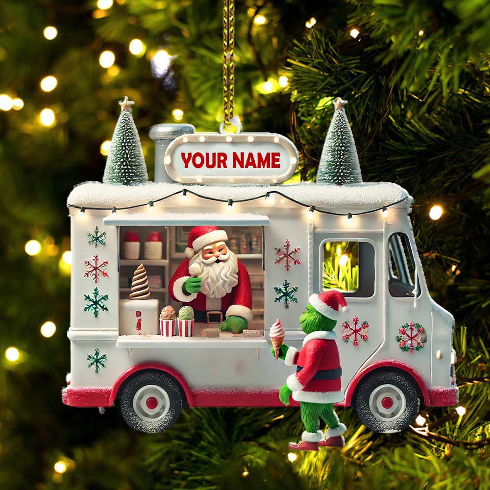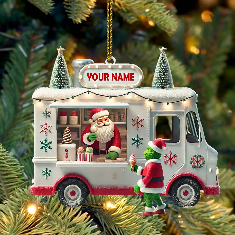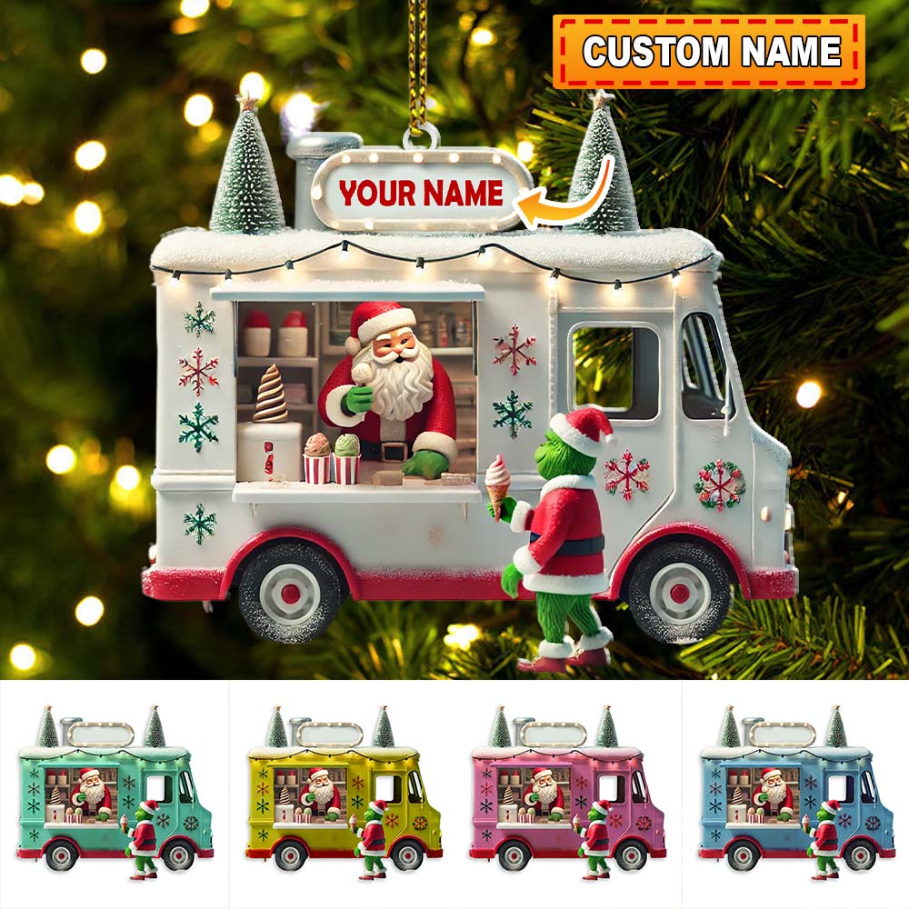 Custom Name Santa Ice Cream Truck Ornament, Christmas Gift