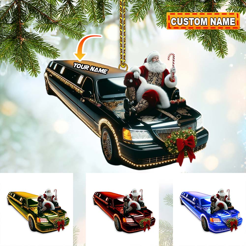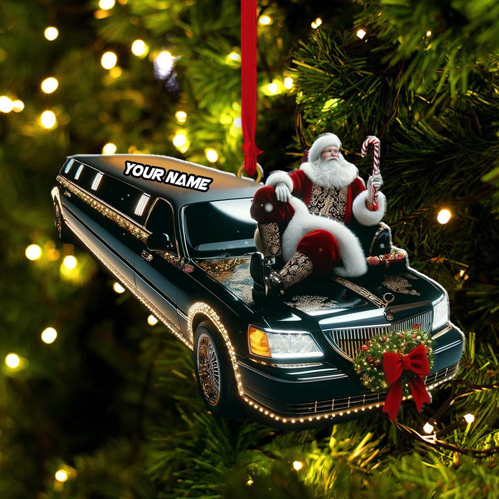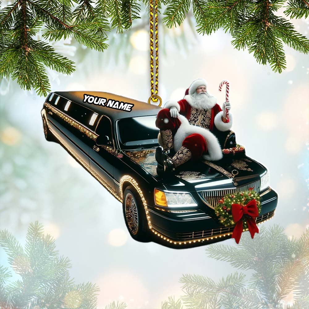 Custom Name Santa Limousine Ornament, Santa Christmas Gift Decoration