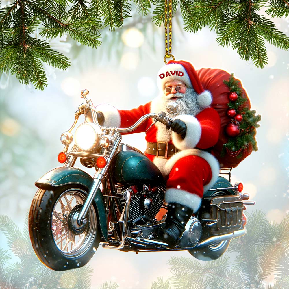 Custom Name Santa Motorbike Ornament, Santa Christmas Gift