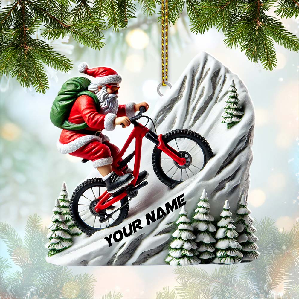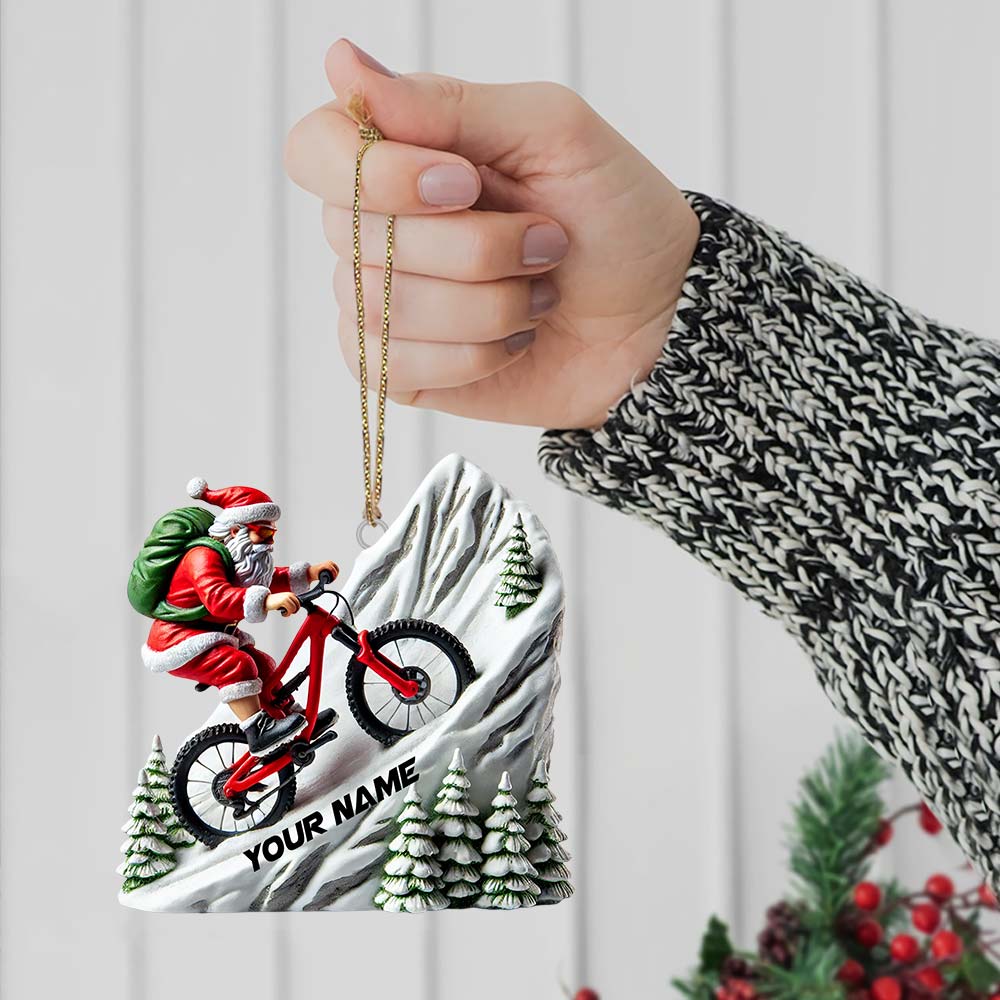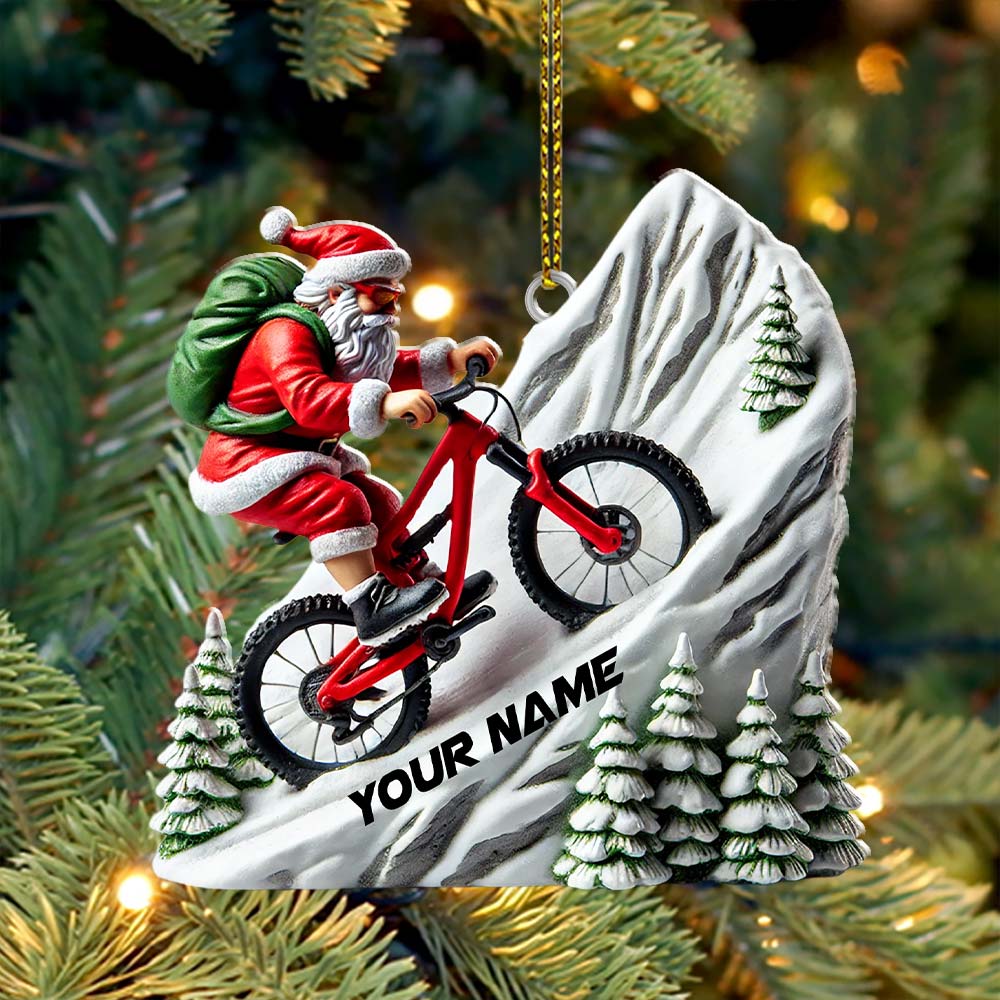 Custom Name Santa Mountain Bike Ornament, Santa Christmas Gift