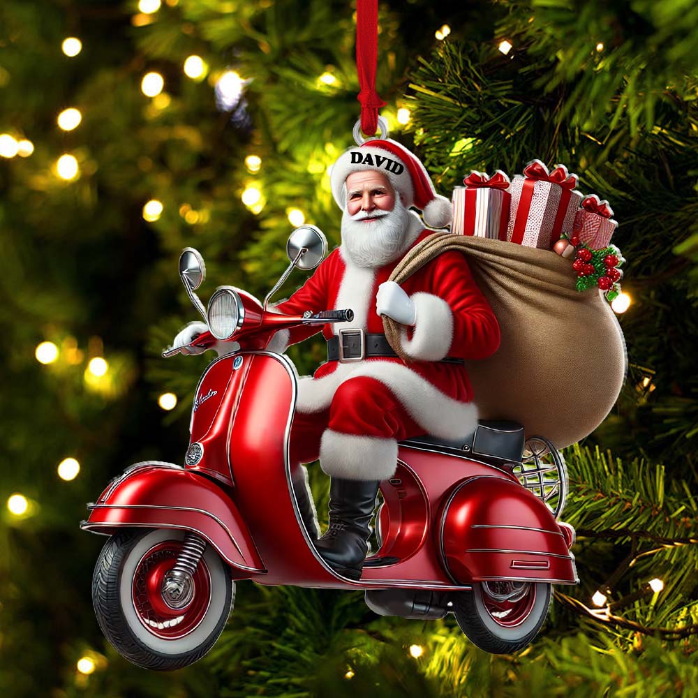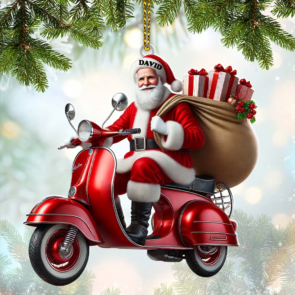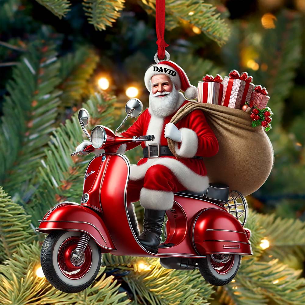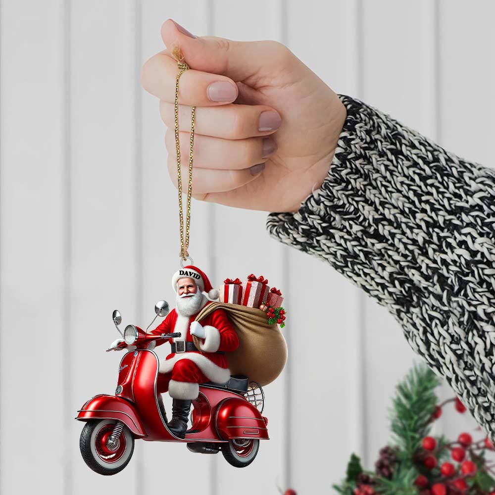 Custom Name Santa Ornament, MotoBike Ornament, Christmas Gift Decoration