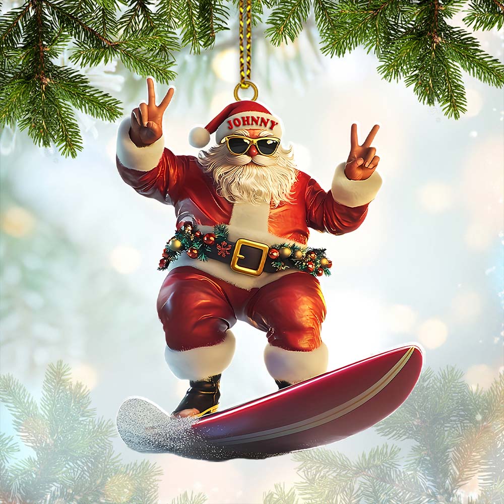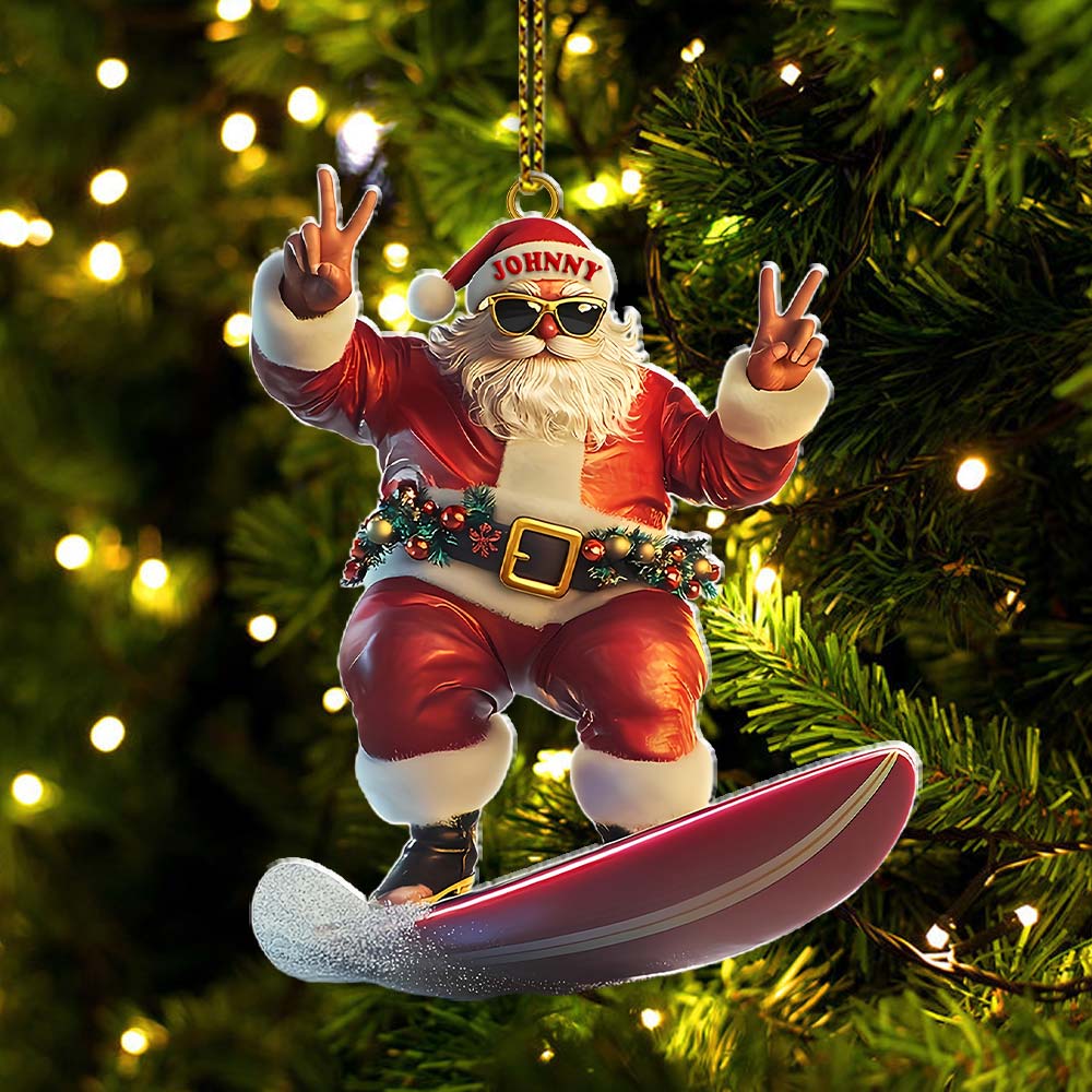 Custom Name Santa Surfing Ornament, Santa Christmas Gift