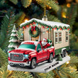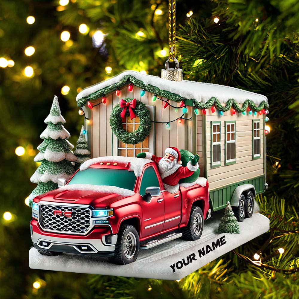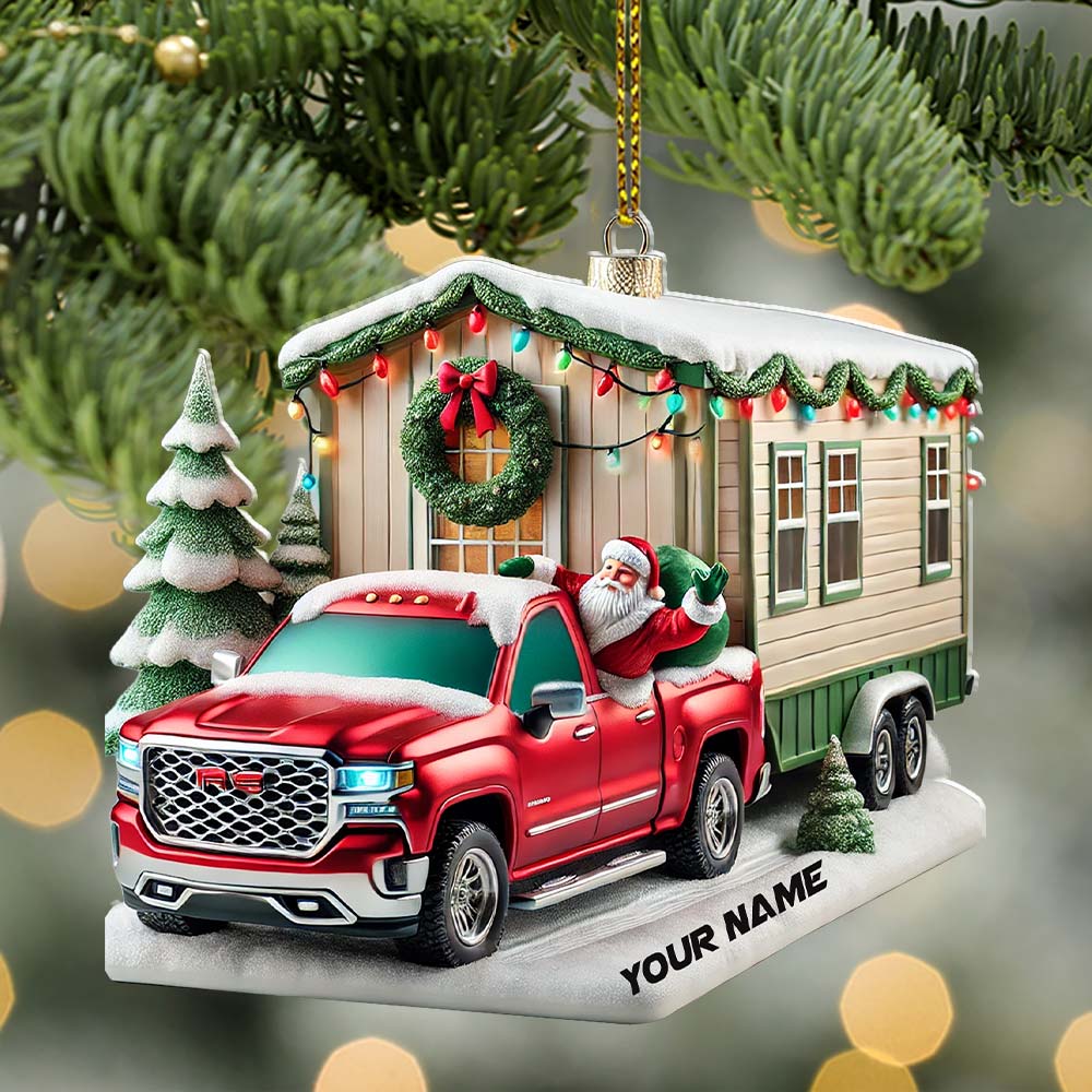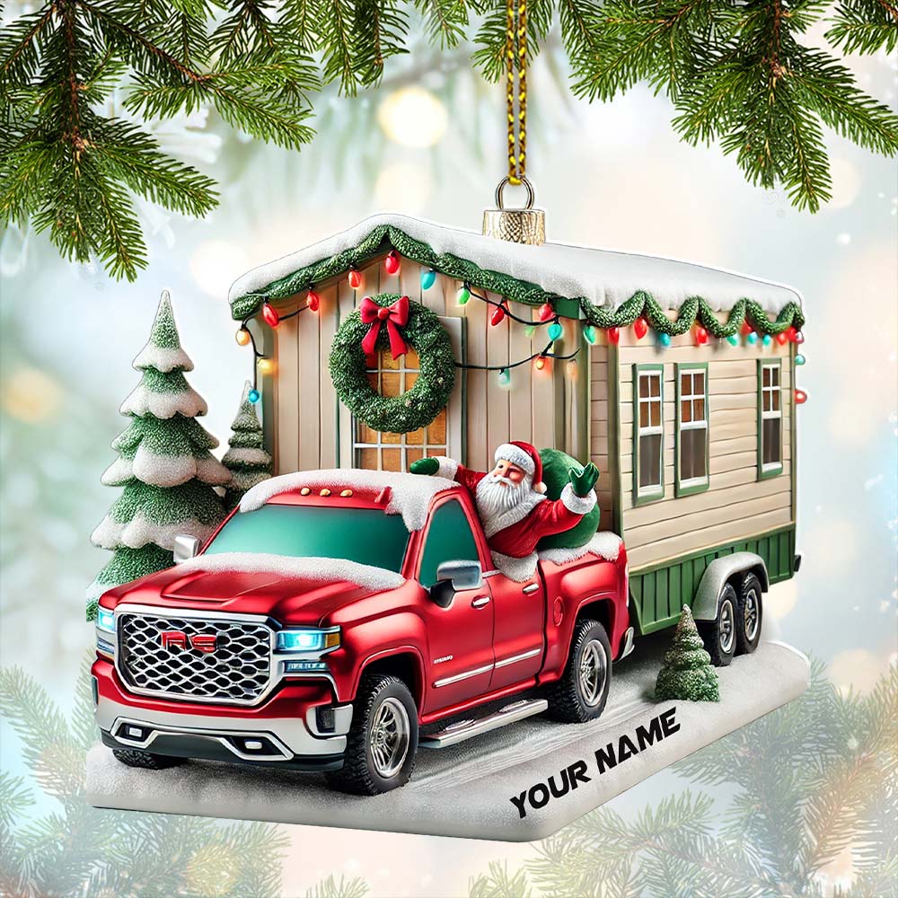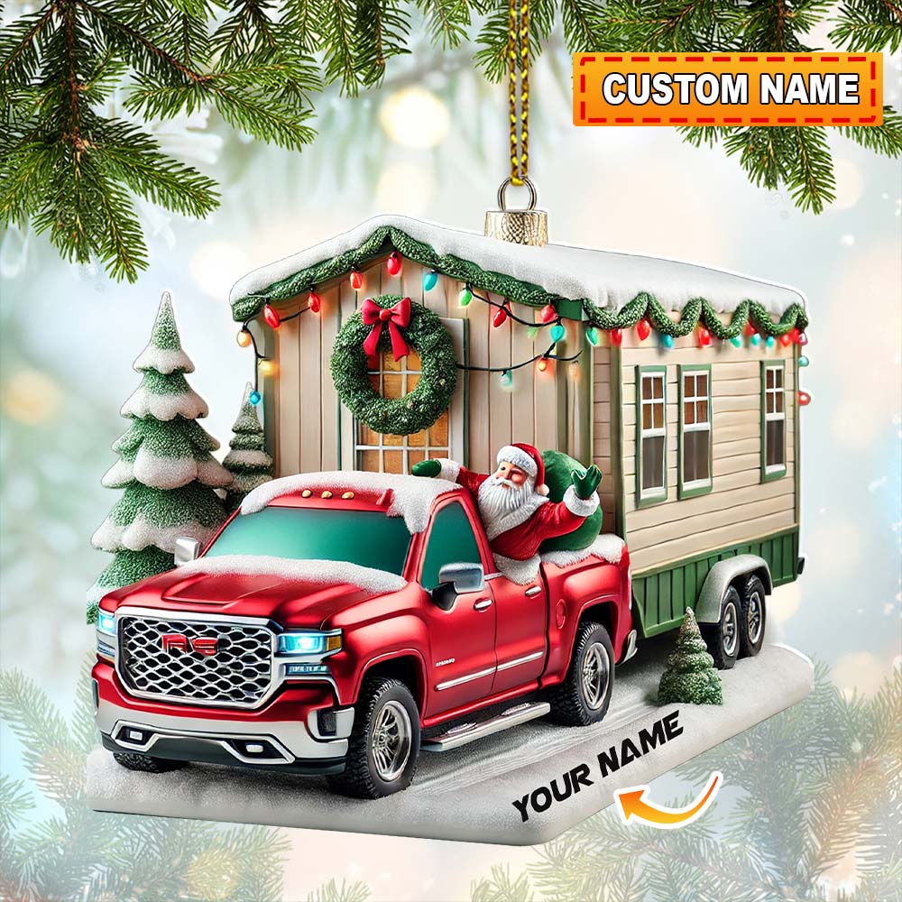 Custom Name Santa Truck House Ornament, Christmas Gift Decor