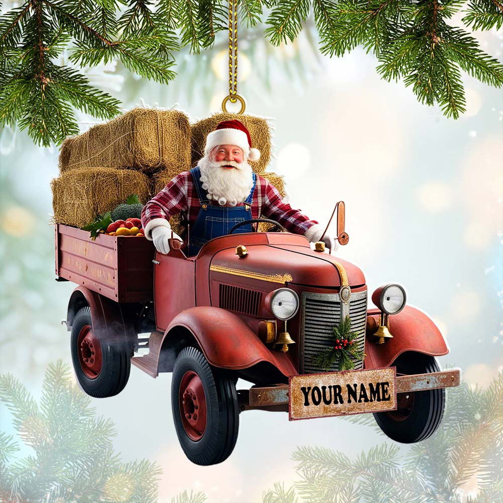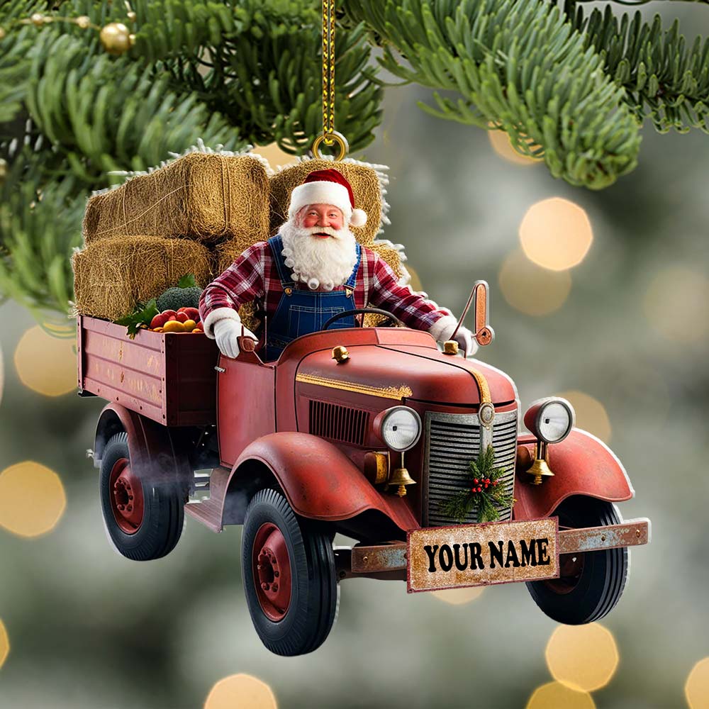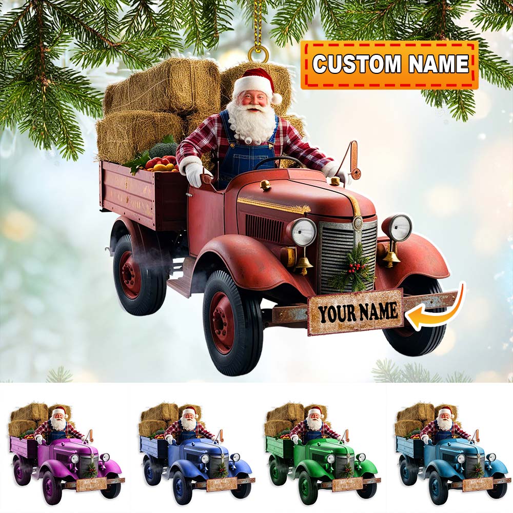 Custom Name Santa Truck Ornament, Christmas Gift Decoration