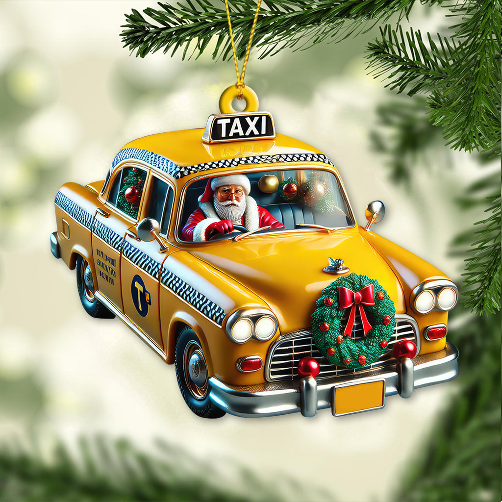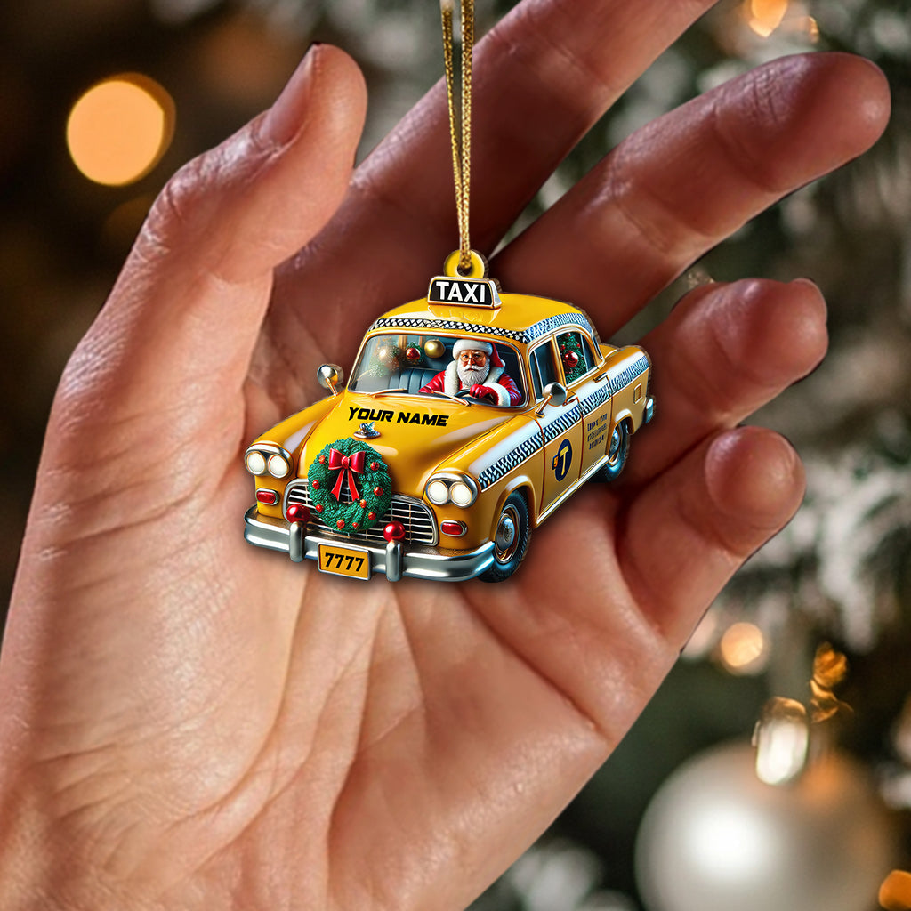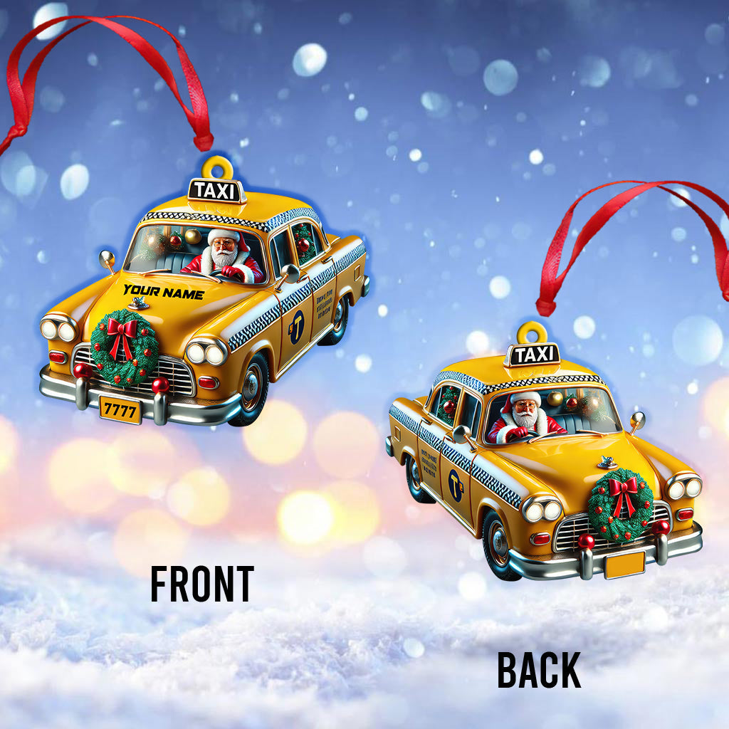 Custom Name Taxi Santa Ornament, Santa Christmas Gift