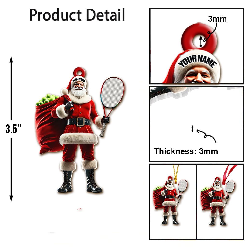 Custom Name Tennis Santa Ornament, Tennis Christmas Gift