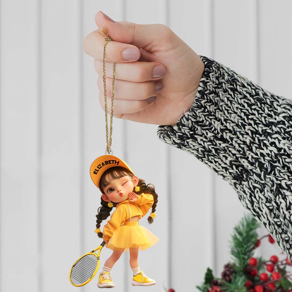 Custom Name Woman Tennis Ornament, Tennis Christmas Gift