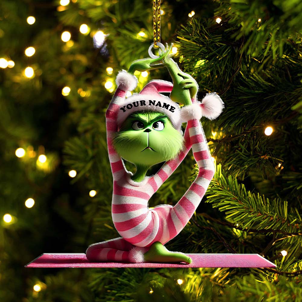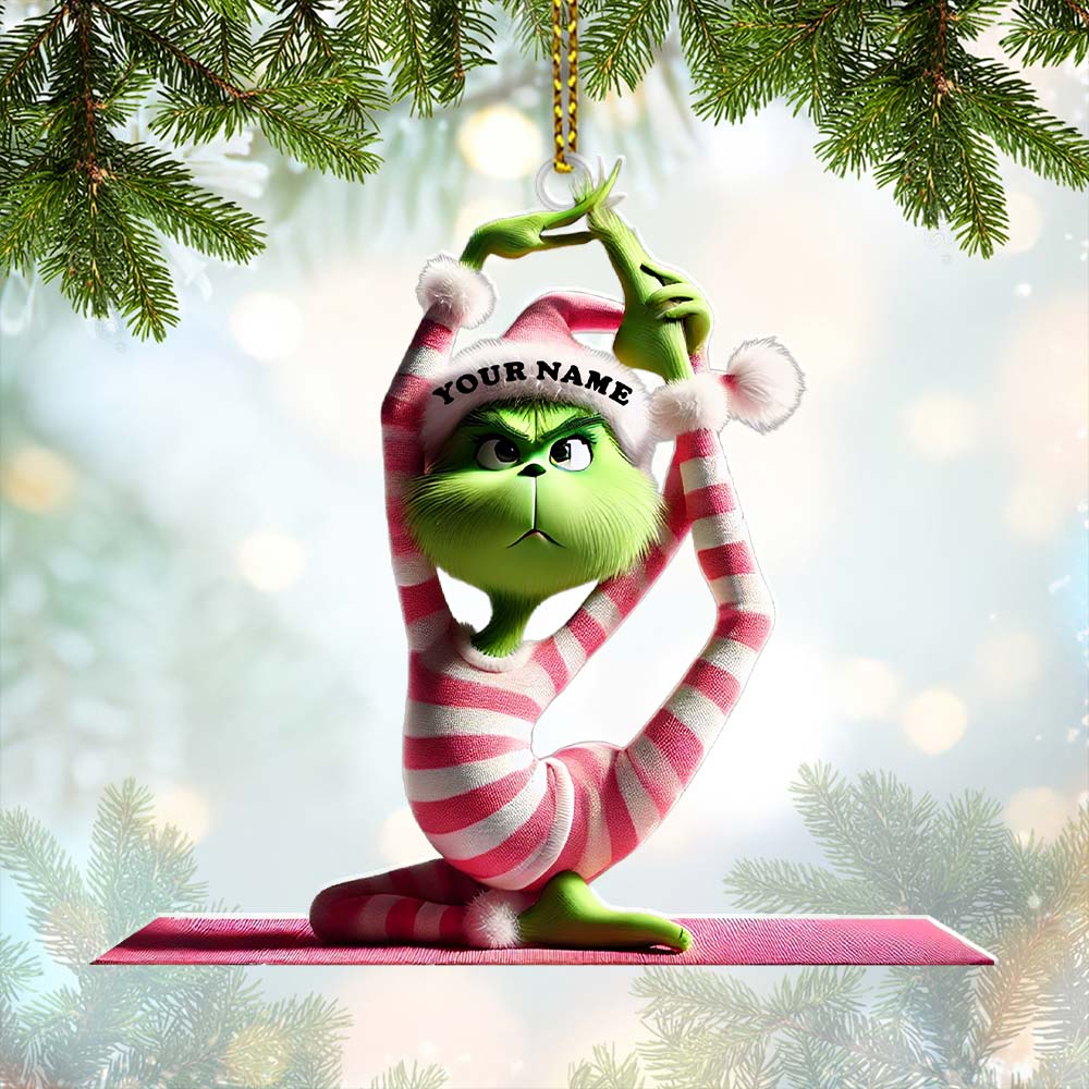 Custom Name Yoga Grinch Ornament, Christmas Gift for Yoga Lover