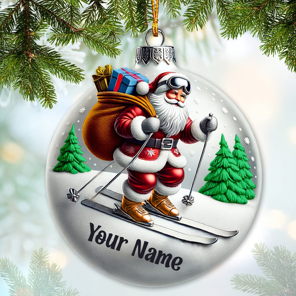 Custom Ornament, Christmas Santa Skiing Ornament, Christmas Decor
