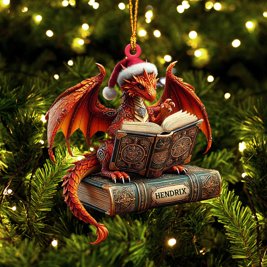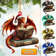 Dragon Reading Book Christmas Ornament, Personalized Ornament