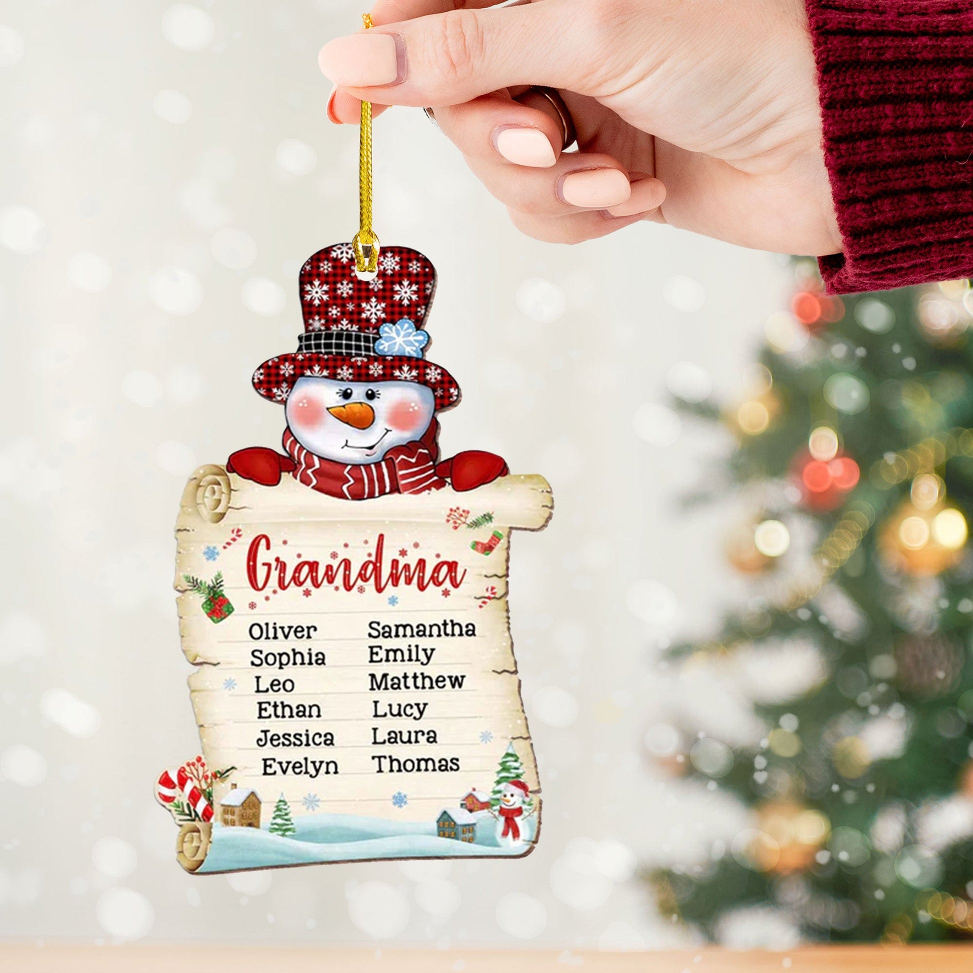 Gift For Grandma Snowman Christmas, Custom Names - Personalized Custom Shaped Wooden Ornament - Gift For Family