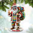 Hippie Santa Christmas Ornament, Personalized Ornament