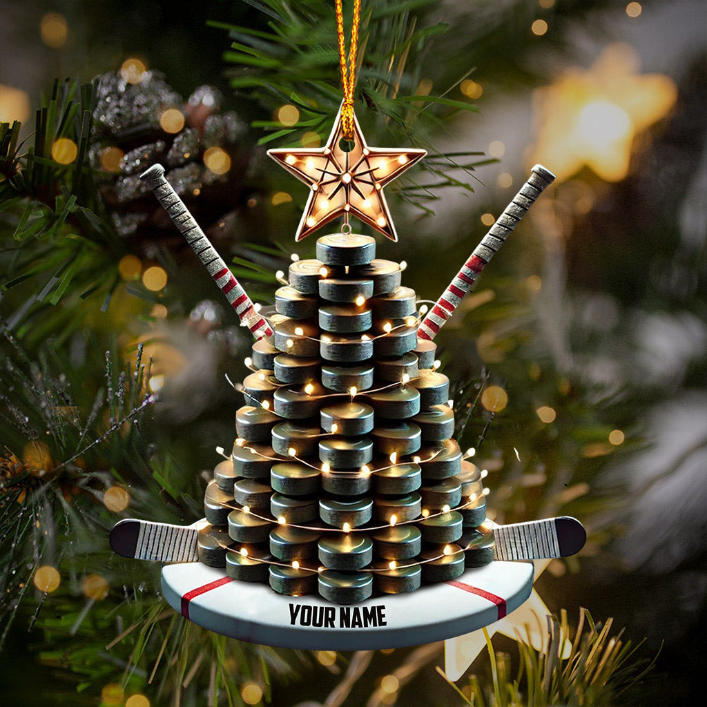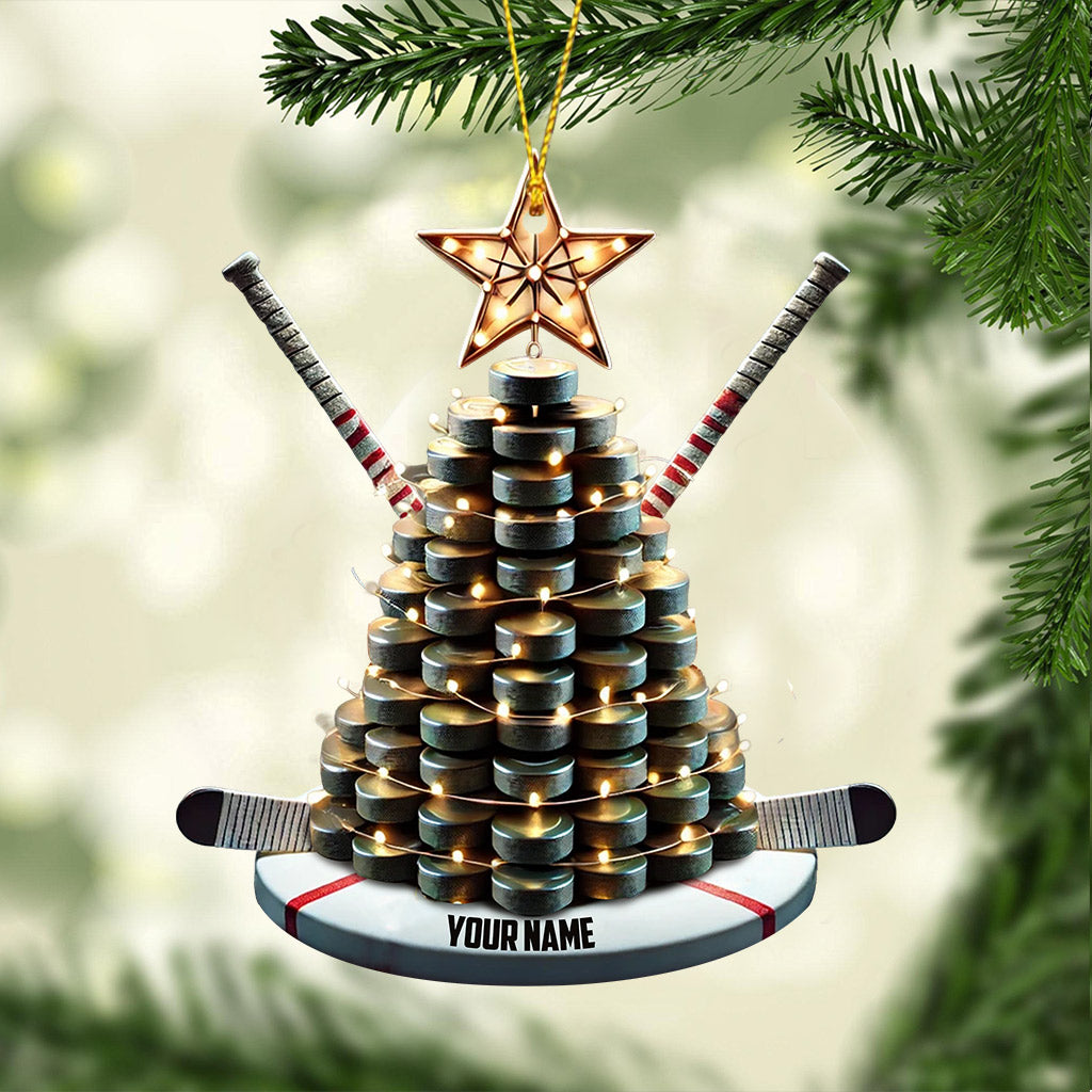 Hockey Tree Christmas Ornament, Personalized Ornament